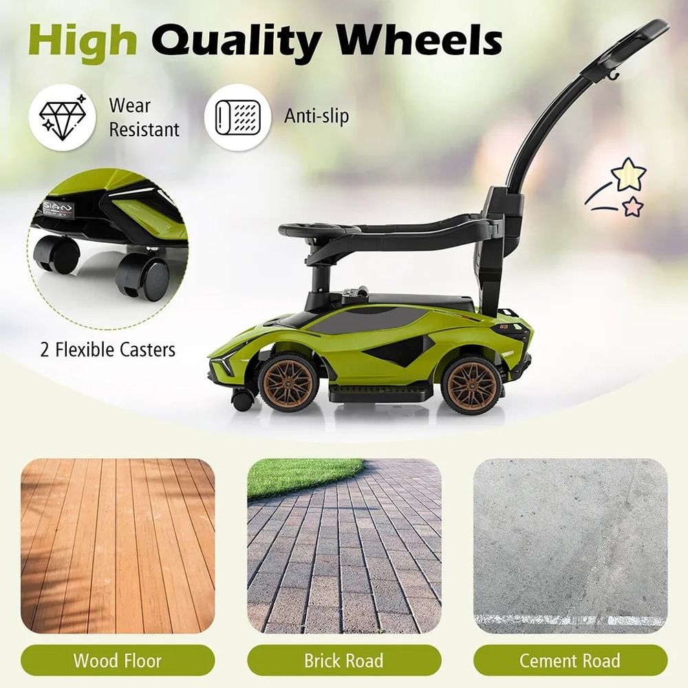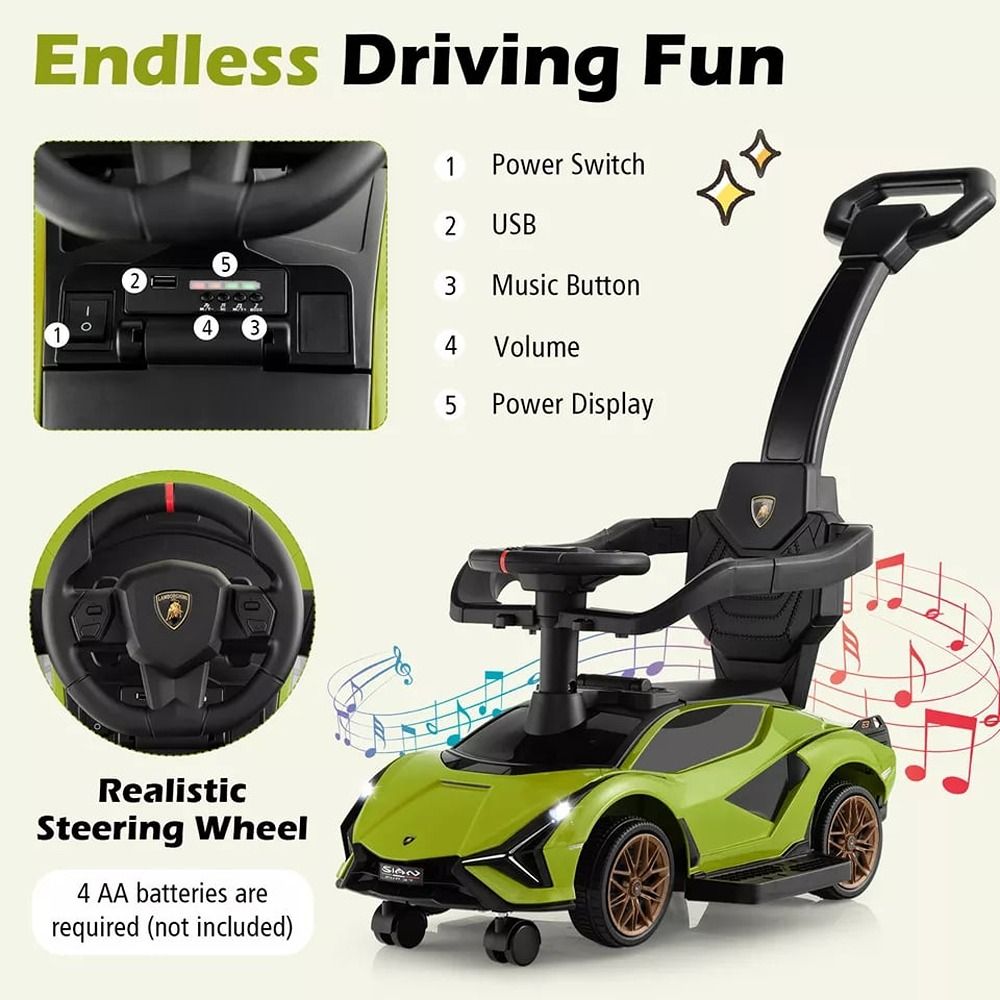 Our licensed Lamborghini ride on push car will be an ideal birthday gift for your little one. This sliding car will grow with your kids. It can be used as a stroller (for 18-24 months old), walking car (for 24-36 months old) and riding on car (for 36-60 months old).