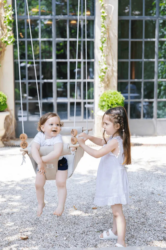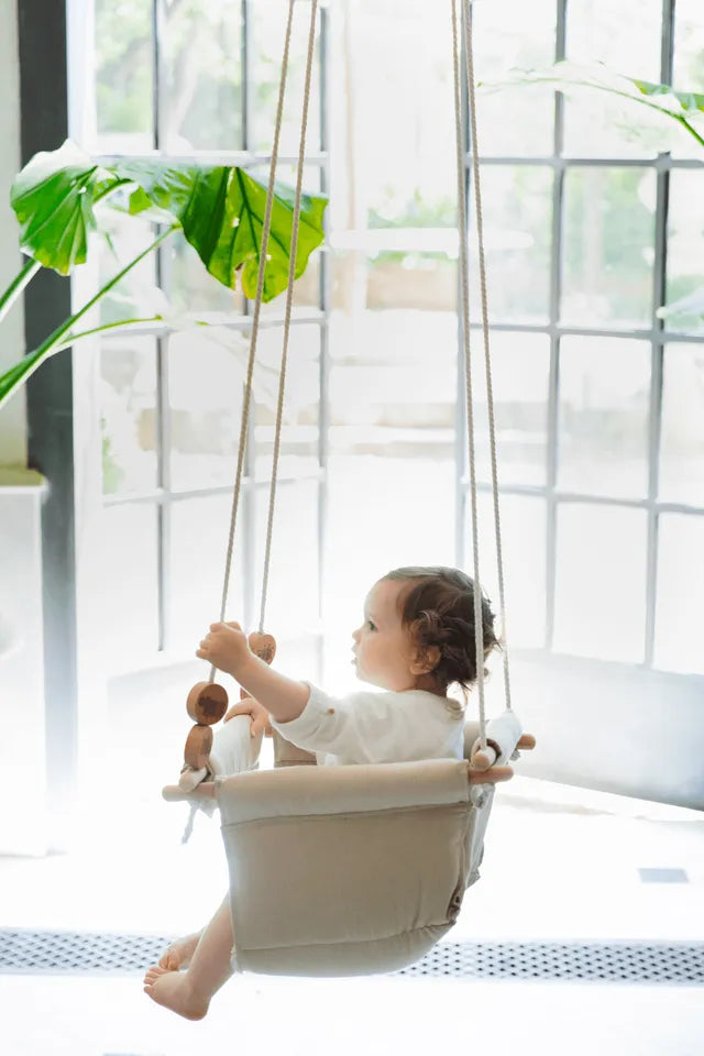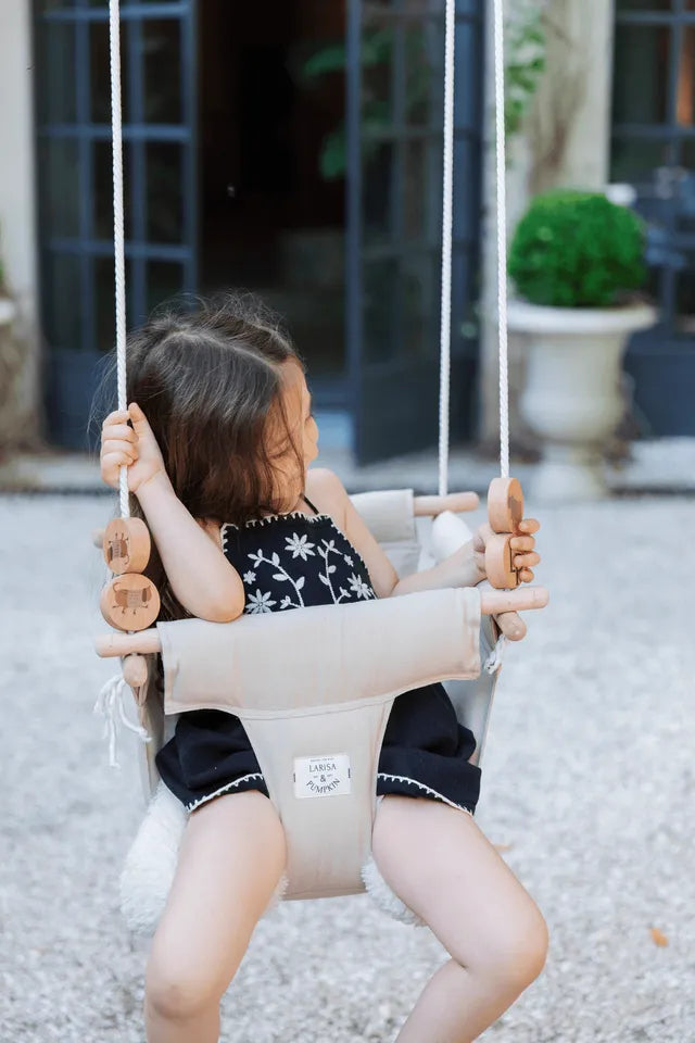 With the Larisa And Pumpkin Swing, children are not only having fun. They also develop their motor skills with rocking movements. It is mounted to the wall with a steel dowel. Suitable for indoor use. It carries up to 30kg.