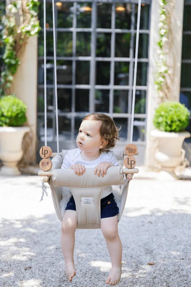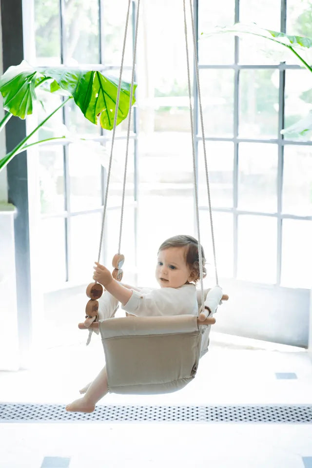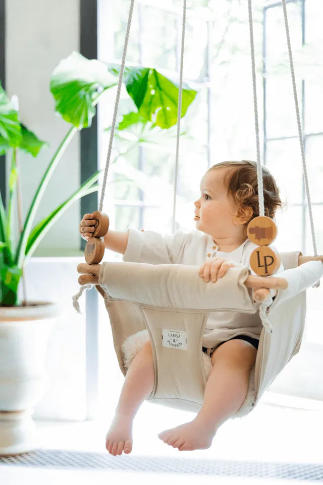 With the Larisa And Pumpkin Swing, children are not only having fun. They also develop their motor skills with rocking movements. It is mounted to the wall with a steel dowel. Suitable for indoor use. It carries up to 30kg.