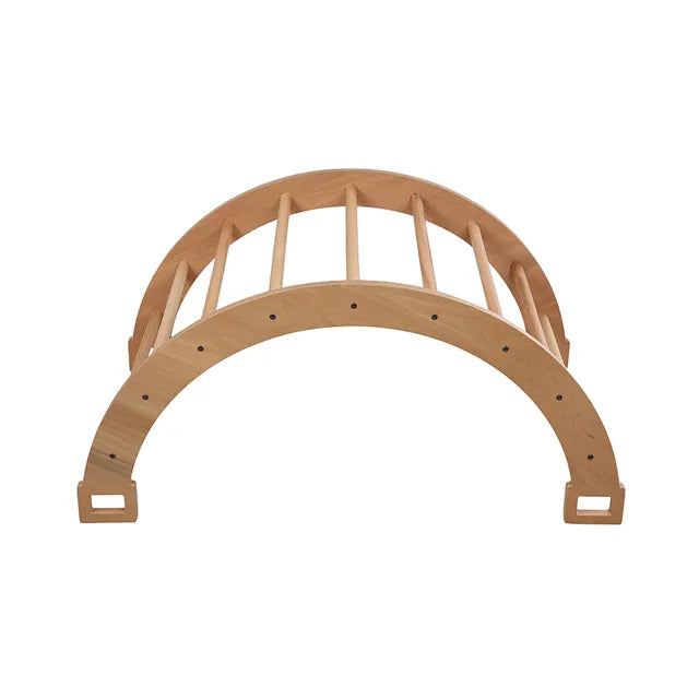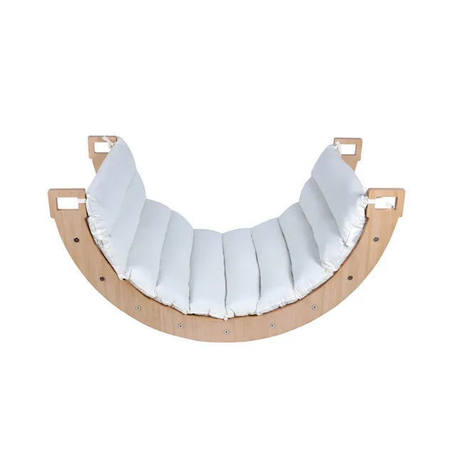 The Larisa and Pumpkin Large Rocker and/or Climbing Arch, with its additional cushion, will help your little one play and imagine. It supports the development of your child's confidence, balance, and strength skills. When flipped over, it allows your child to have a pleasant and safe time both alone and with you while resting. The wooden parts are made from natural beech wood, and the cushion is made from 100% cotton poplin.