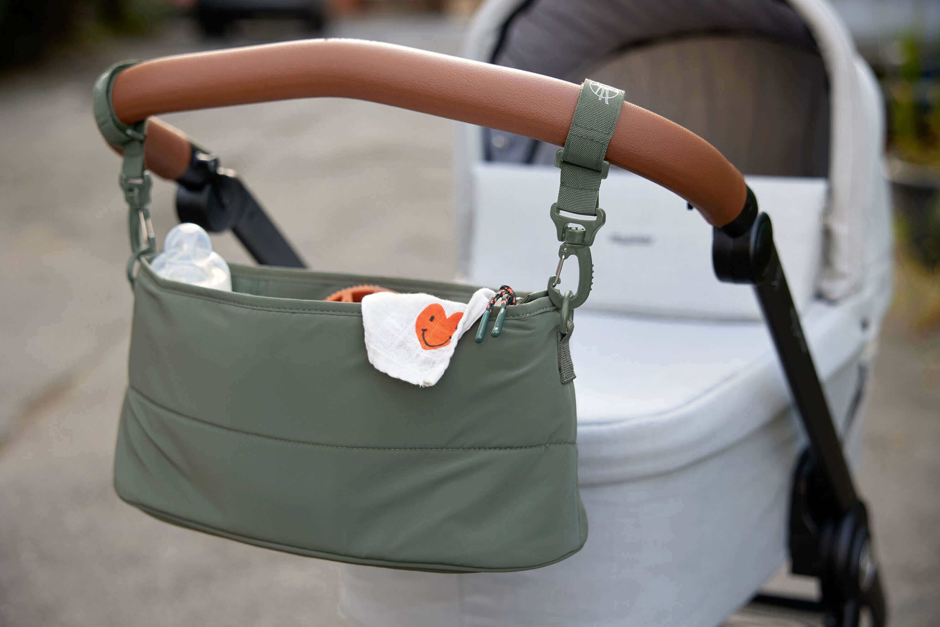 With a large main compartment and a clearly arranged interior, the buggy organizer is an excellent space-saver. If you are on the go without a bag, there’s a safe place for your keys and purse/wallet. Thanks to the zipper your valuables are safe.