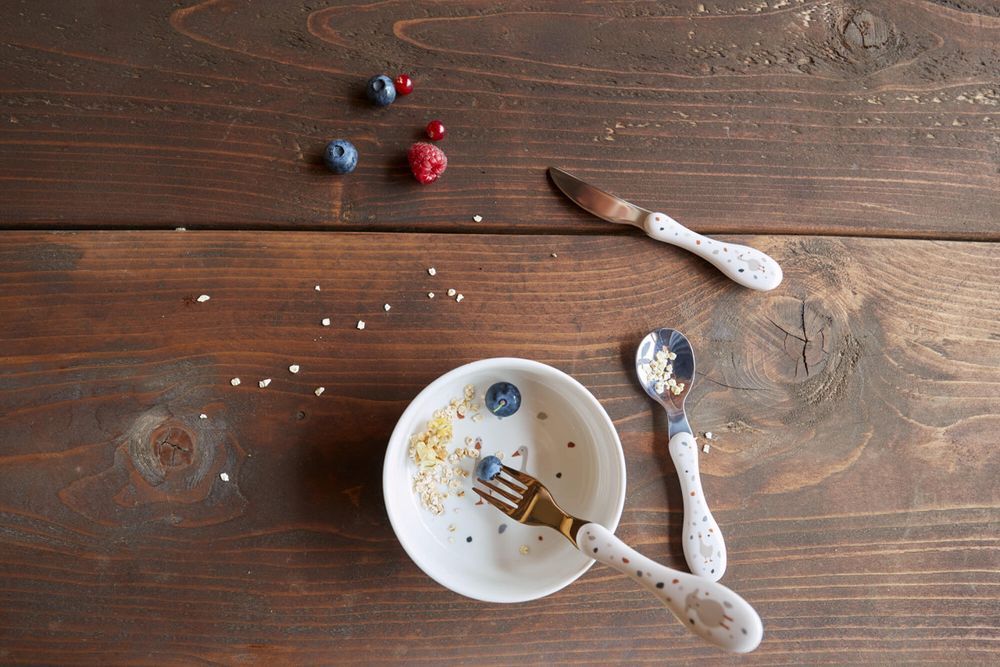 Food tastes twice as good as children's cutlery from Lassig. Small lovely prints adorn the child-friendly handles. The knife, fork and spoon set is BPA-free and made of stainless, non-deformable steel with plastic handles. Thanks to its rounded edges, the knife is also suitable for the smallest gourmets and teaches how to eat independently in a playful way.