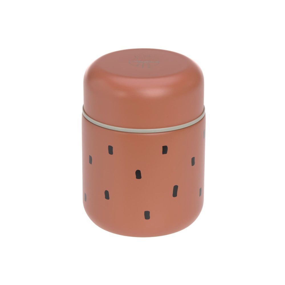 Snack to go! The practical Lassig Food Jar from the Happy Prints collection in a restrained and modern design is the perfect food container for your travels. This double-walled stainless-steel thermos container keeps yogurt and other foodstuffs nice and fresh, ready for children to eat at lunchtime, especially when they are out and about. The medium-sized stainless-steel container is odourless and tasteless and keeps food at the right temperature on the journey to school or a nearby playground.