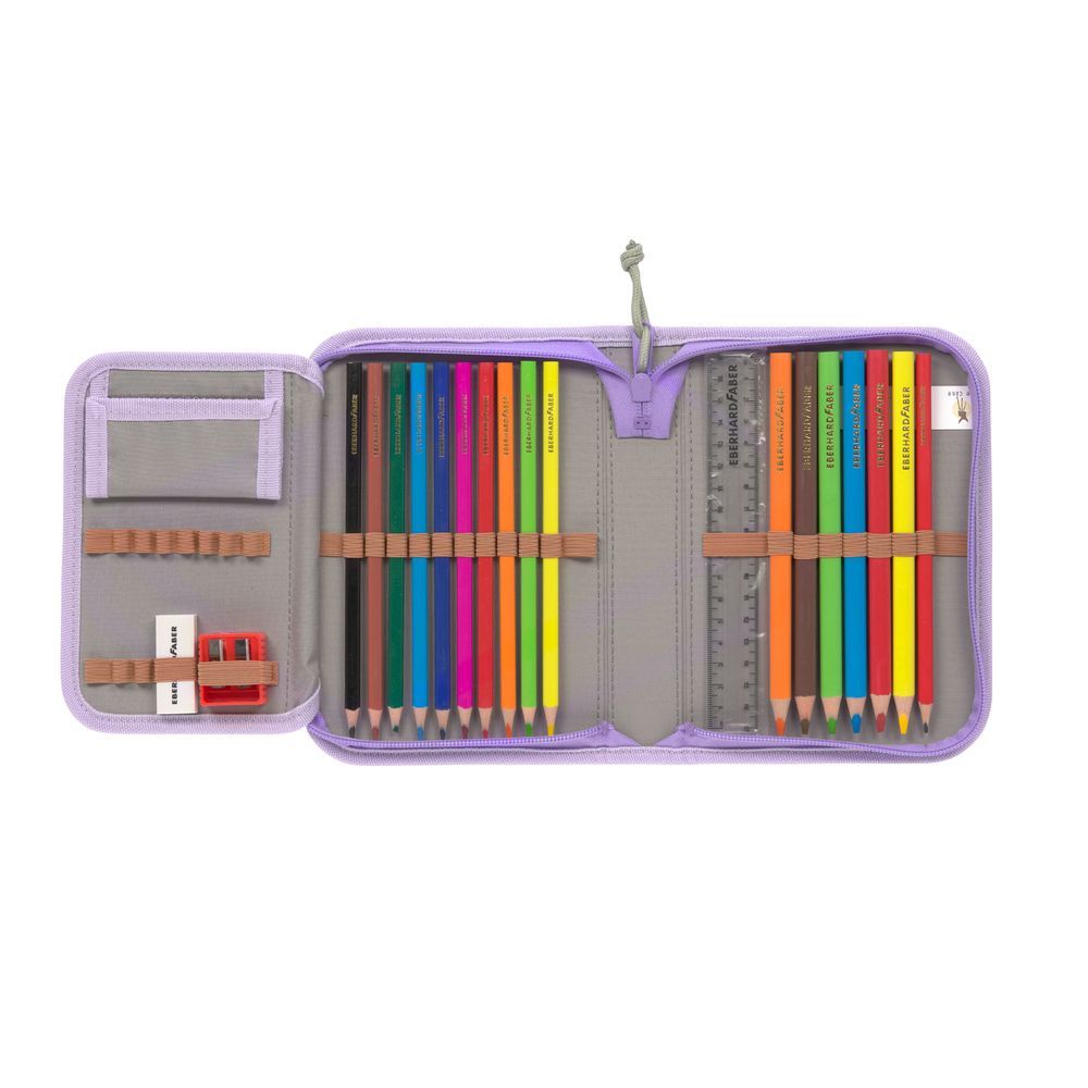 Thanks to its dirt- and water-repellent material, it is a reliable companion even on larger adventures. For the perfect start to school, the Lassig Unique collection offers school bag sets, a large selection of separately available pendants, patches and textile stickers as well as spacious pencil cases. Sustainability is not neglected: For each Unique school bag set, polyester was recycled and processed into a new material. The recycled material content corresponds to up to 35 PET bottles with an average weight of 17.2g. The 7-piece school bag set includes: 1.22 kg school bag, Gym bag: easy to attach to the school bag, Pencil case: Eberhard Faber pens & accessories, Neck pouch with key finder, Rain cover (in the lid): reflective, Set of pendants and 2 patches.