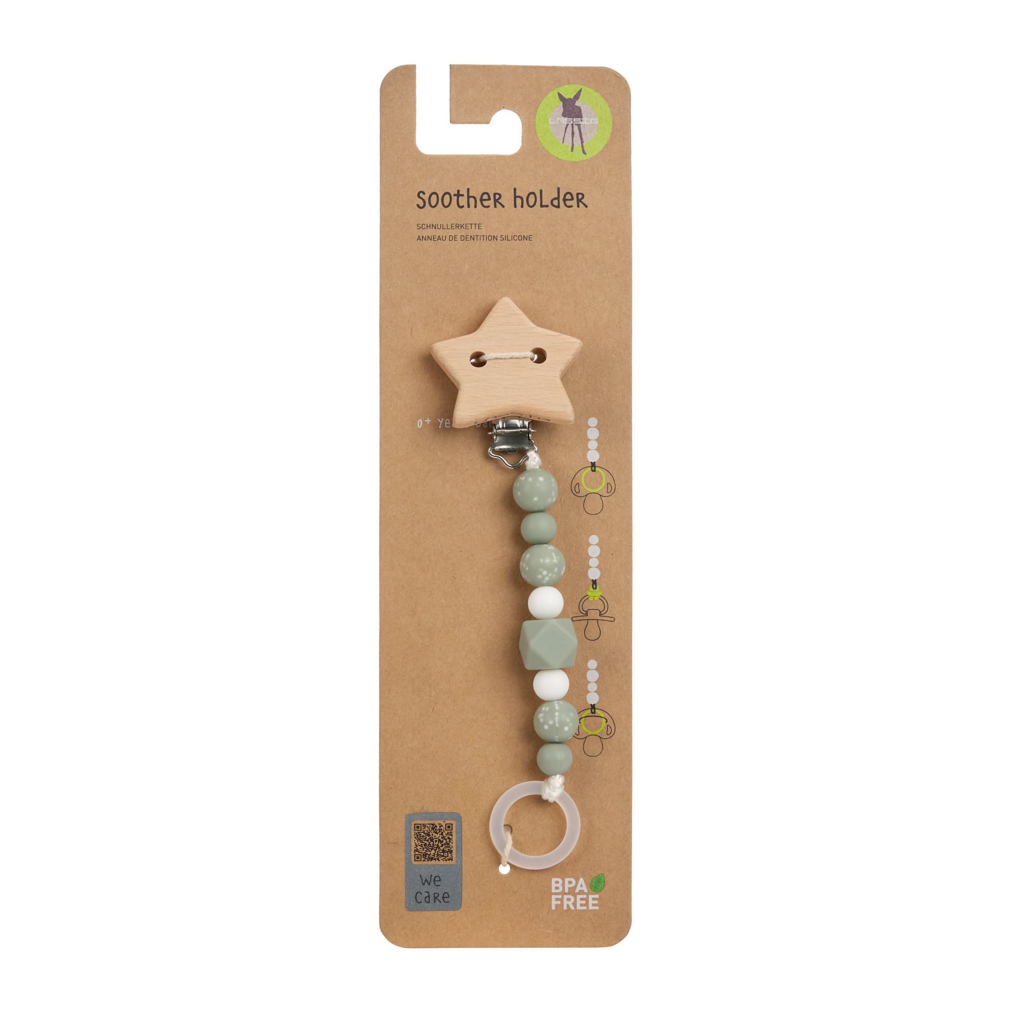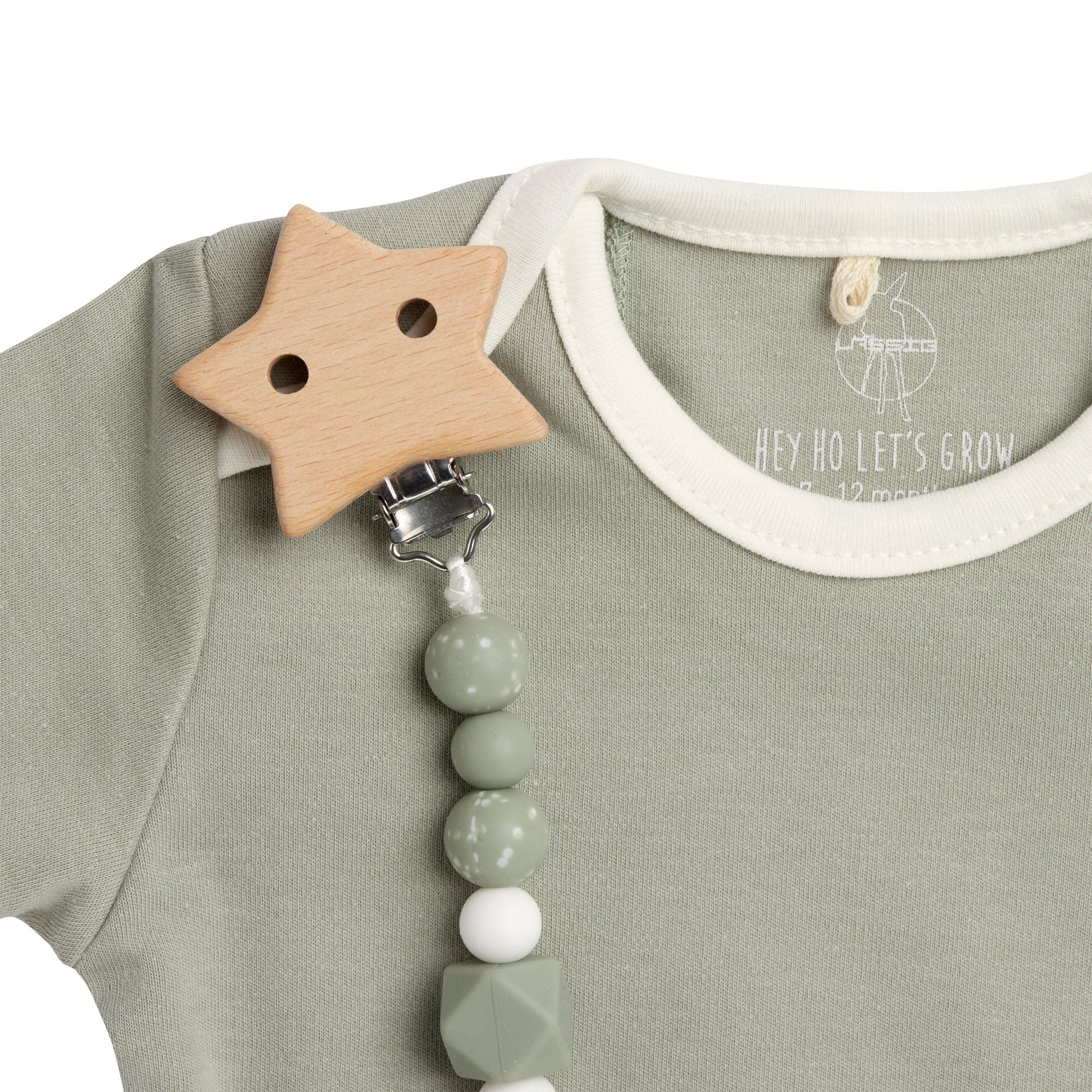 Lassig Soother Holder Wood / Silicone - Little Universe Star Olive