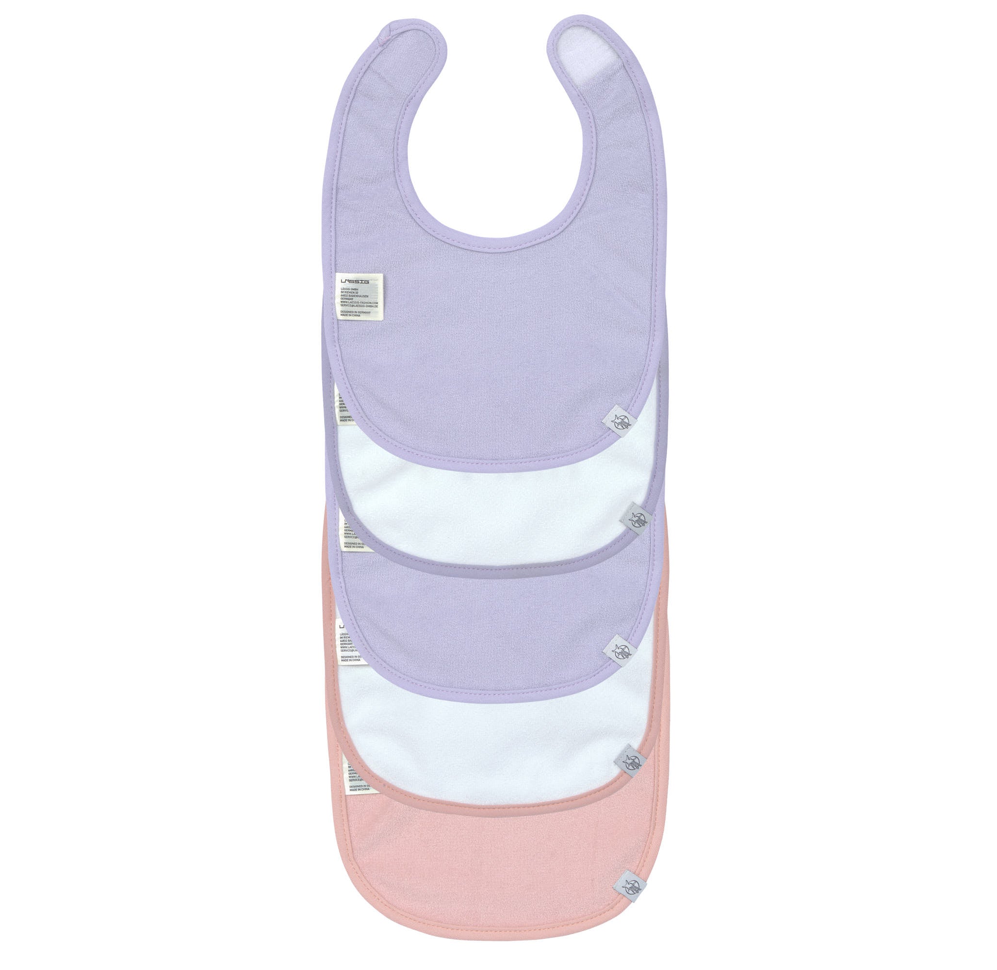 With these waterproof sets of five bibs from Lassig, little gourmets can spill their food without feeling regret. The organic cotton is carefree . The bibs are perfect for children from 6 to 24 months. The bibs that are sold in multiple assortments have a hook and loop tape fastener on the reverse side and are made of easy-care organic cotton/polyester mix and feature a waterproof interior lining to keep baby's clothing underneath absolutely dry. The set of five is available in various colors, with and without pattern. The bibs are machine-washable at 40°C. Tip: Fasten hook and loop tape straps before washing.