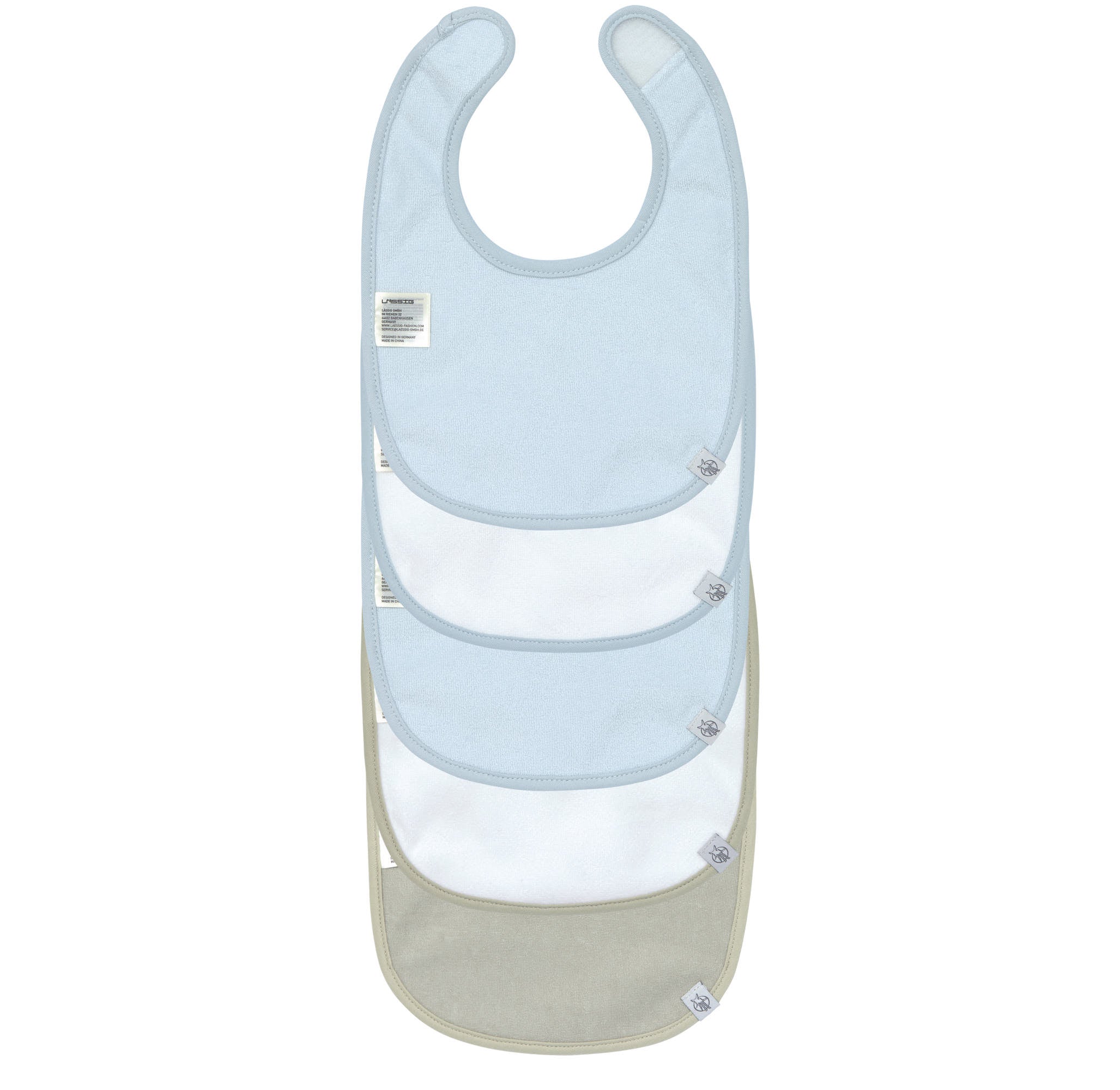 With these waterproof sets of five bibs from Lassig, little gourmets can spill their food without feeling regret. The organic cotton is carefree . The bibs are perfect for children from 6 to 24 months. The bibs that are sold in multiple assortments have a hook and loop tape fastener on the reverse side and are made of easy-care organic cotton/polyester mix and feature a waterproof interior lining to keep baby's clothing underneath absolutely dry. The set of five is available in various colors, with and without pattern. The bibs are machine-washable at 40°C. Tip: Fasten hook and loop tape straps before washing.