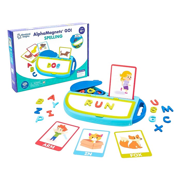 Encourage independent learning with this portable set that includes alphabet magnets on a magnetic spelling tray. Children simply place a card in the slot, and then use the magnets to spell the words they see – and they can do it all by themselves!