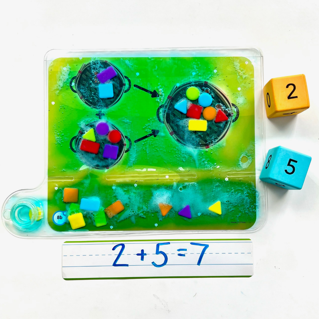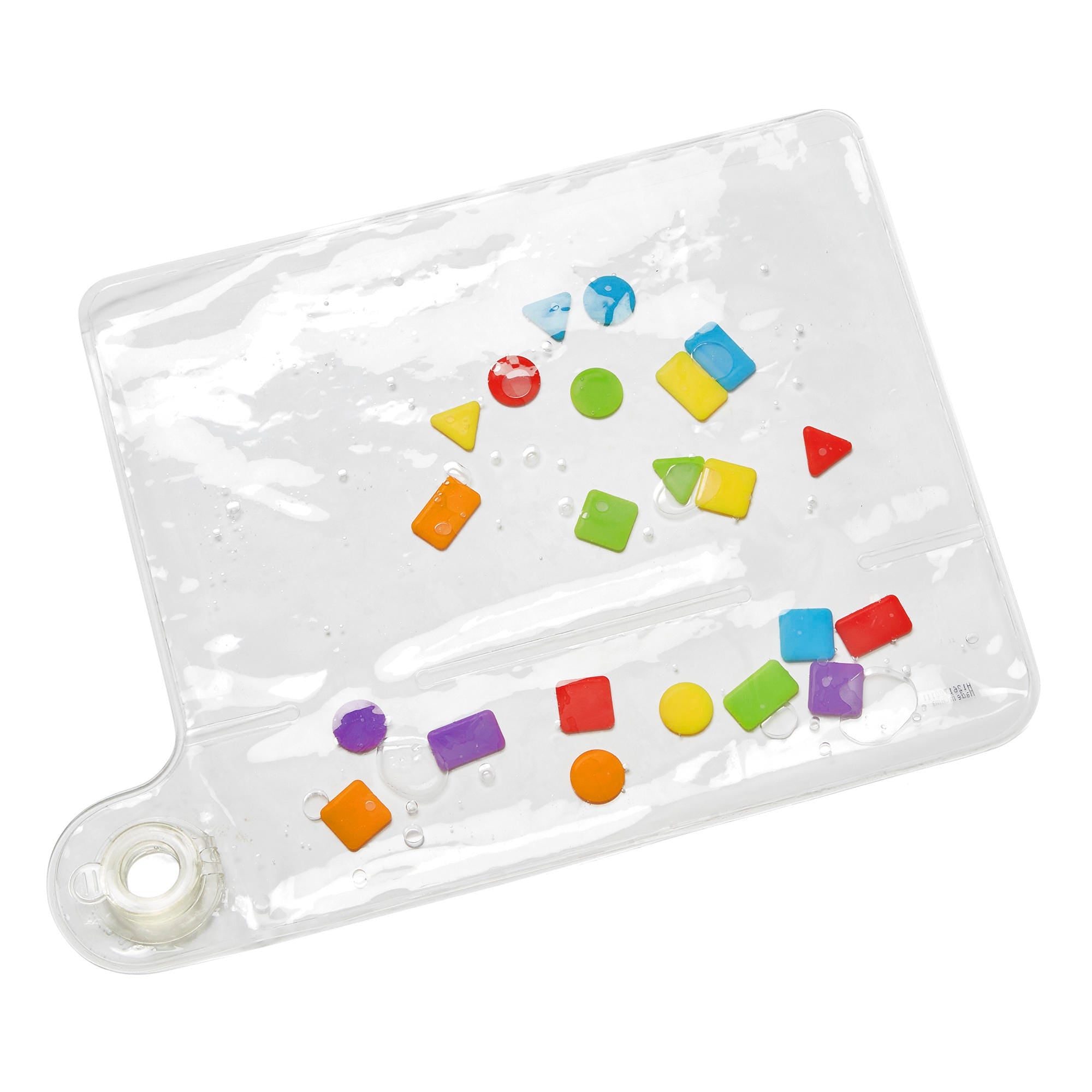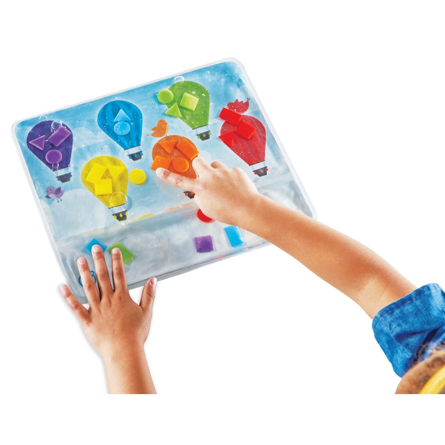 Fill the Colours & Shapes Sensory Pad from Learning Resources with a liquid such as water, gel, or glycerine. Then children use their fingers to guide the shapes through 1 of the 16 activities shown on the 8 double-sided Activity Cards. They’ll have so much fun moving the shapes and completing the activities while improving their hand-eye coordination, tactile development, visual stimulation, strengthening fine motor skills, and sensory exploration skills. This fun activity set includes 4 different shapes—circle, square, rectangle, and triangle, each in 6 different colours. The storage pocket in the back holds all 8 double-sided Activity Cards and provides a flat surface for use anywhere, and the valve makes it easy to fill and drain liquid. The weight of the pad helps children calm down and reduces anxiety when placed on a child’s lap. Set includes 1 Sensory Pad, 24 Plastic Shapes, 8 Double-Sided Activity Cards, and Activity Guide.