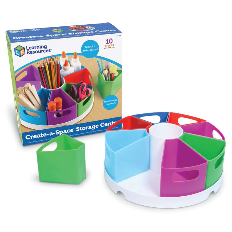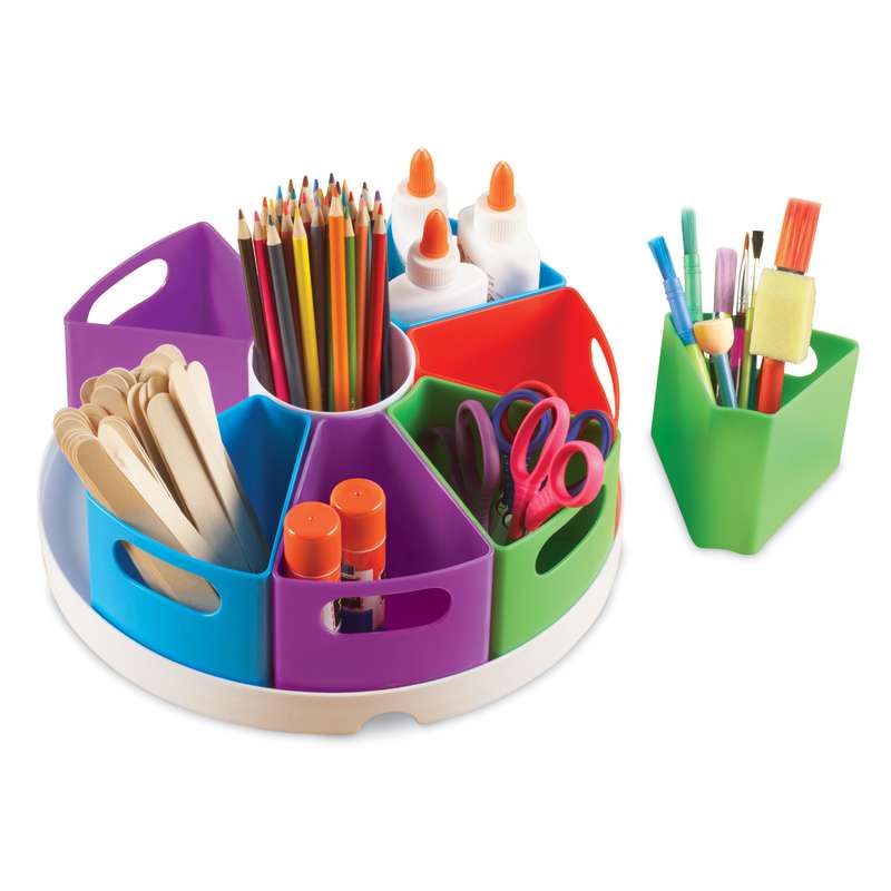 Keep your classroom or homework station neat and tidy with Learning Resources Create-a-Space Storage Center! With nine different compartments, this organisation station can hold a variety of tools such as pens, scissors and glue sticks! Features eight outer segment containers and one round container in the centre.