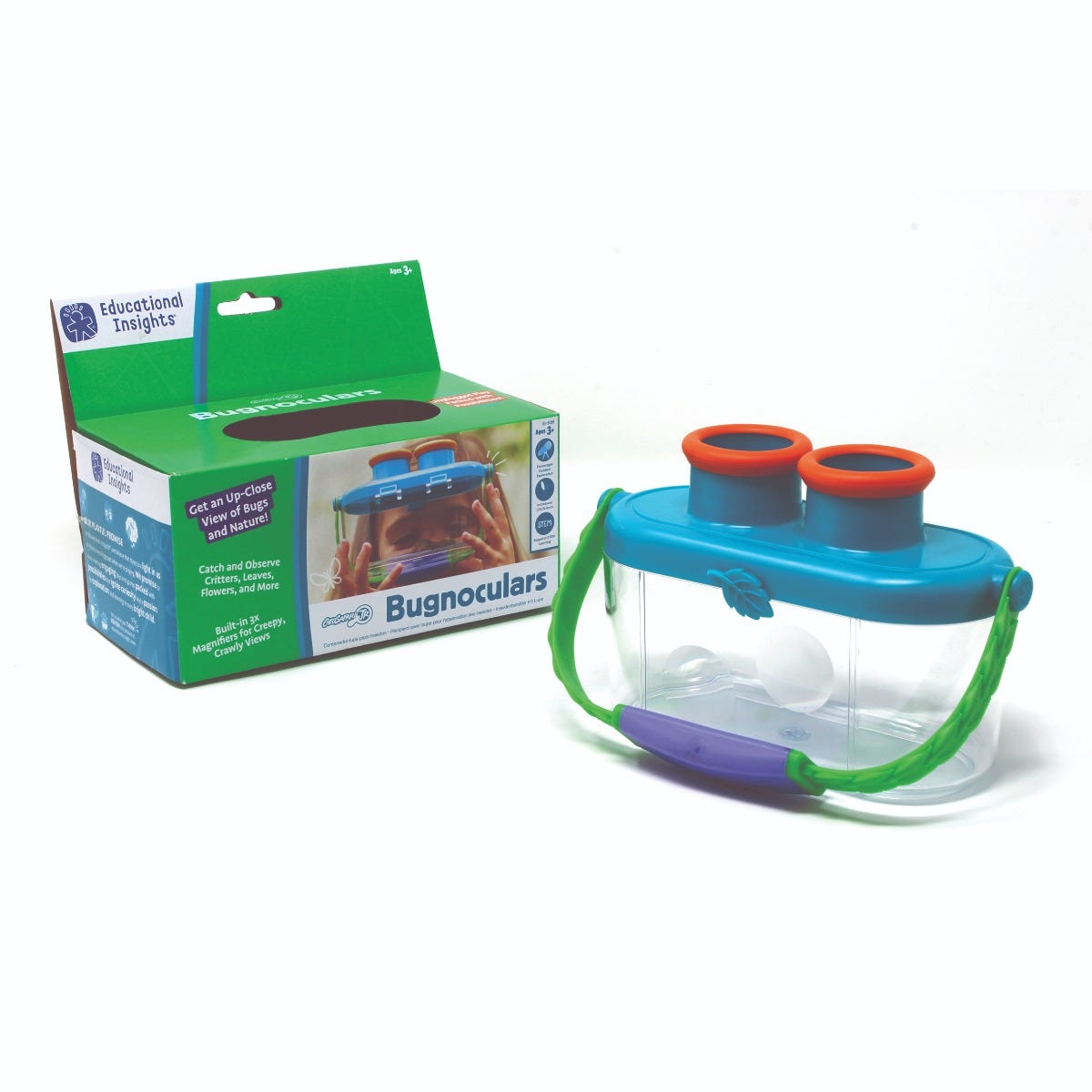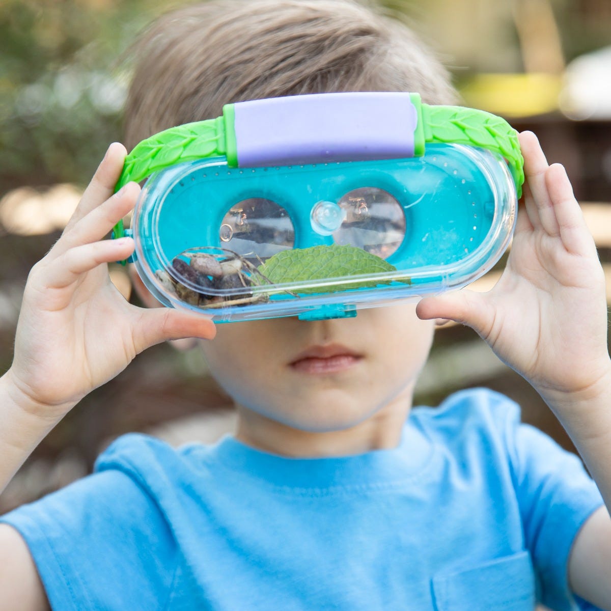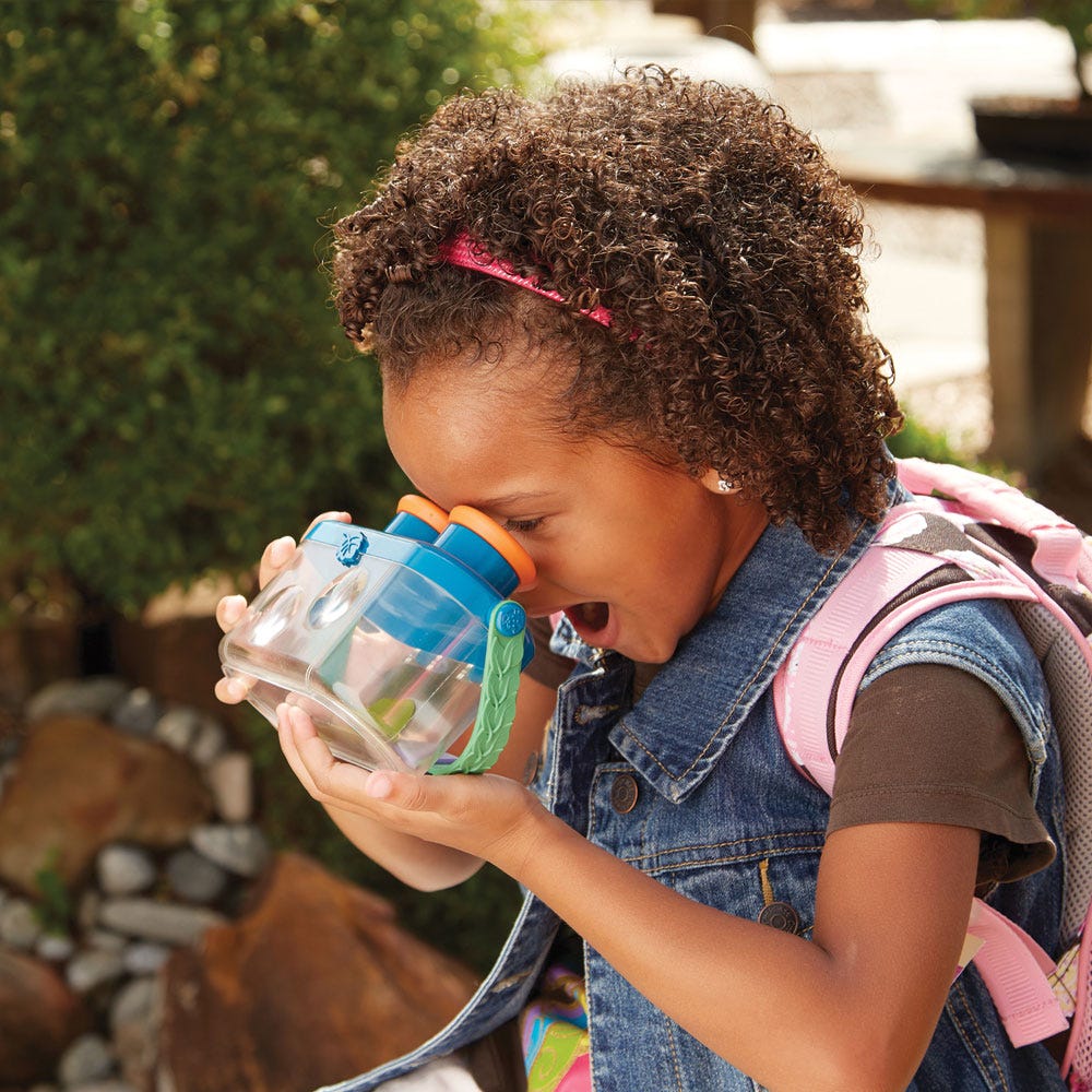 Kids can safely get an up-close view of bugs, flowers, leaves and more with this transparent, lightweight, breathable container. , , Includes:, Soft, rubber-grip handles and snap-lock lid with air holes, 2 Comfortable 3x magnification eyepieces on lid, 2 Additional 2x magnification lenses on the side of the container