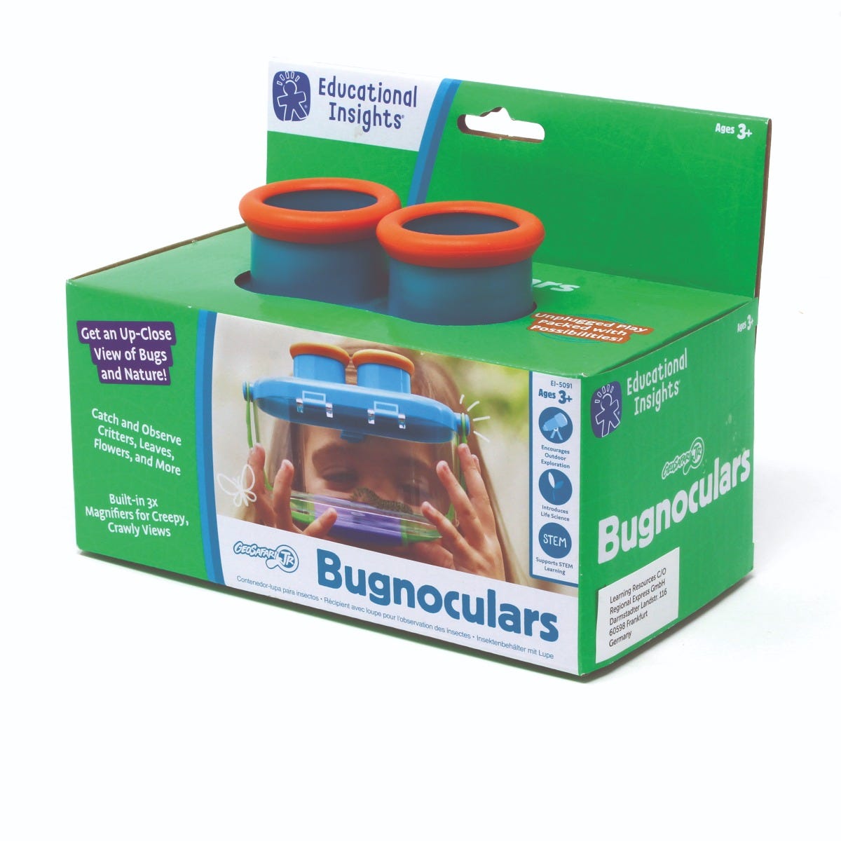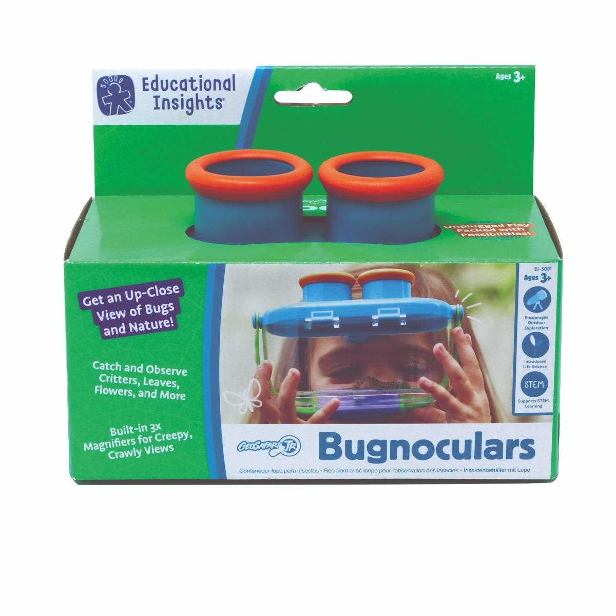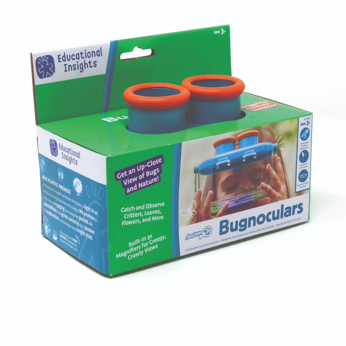 Kids can safely get an up-close view of bugs, flowers, leaves and more with this transparent, lightweight, breathable container. , , Includes:, Soft, rubber-grip handles and snap-lock lid with air holes, 2 Comfortable 3x magnification eyepieces on lid, 2 Additional 2x magnification lenses on the side of the container