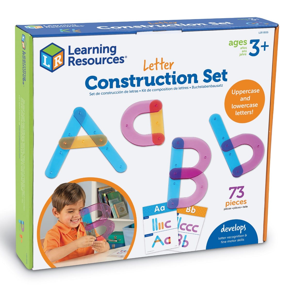 - Snap together pieces to build upper and lowercase letters