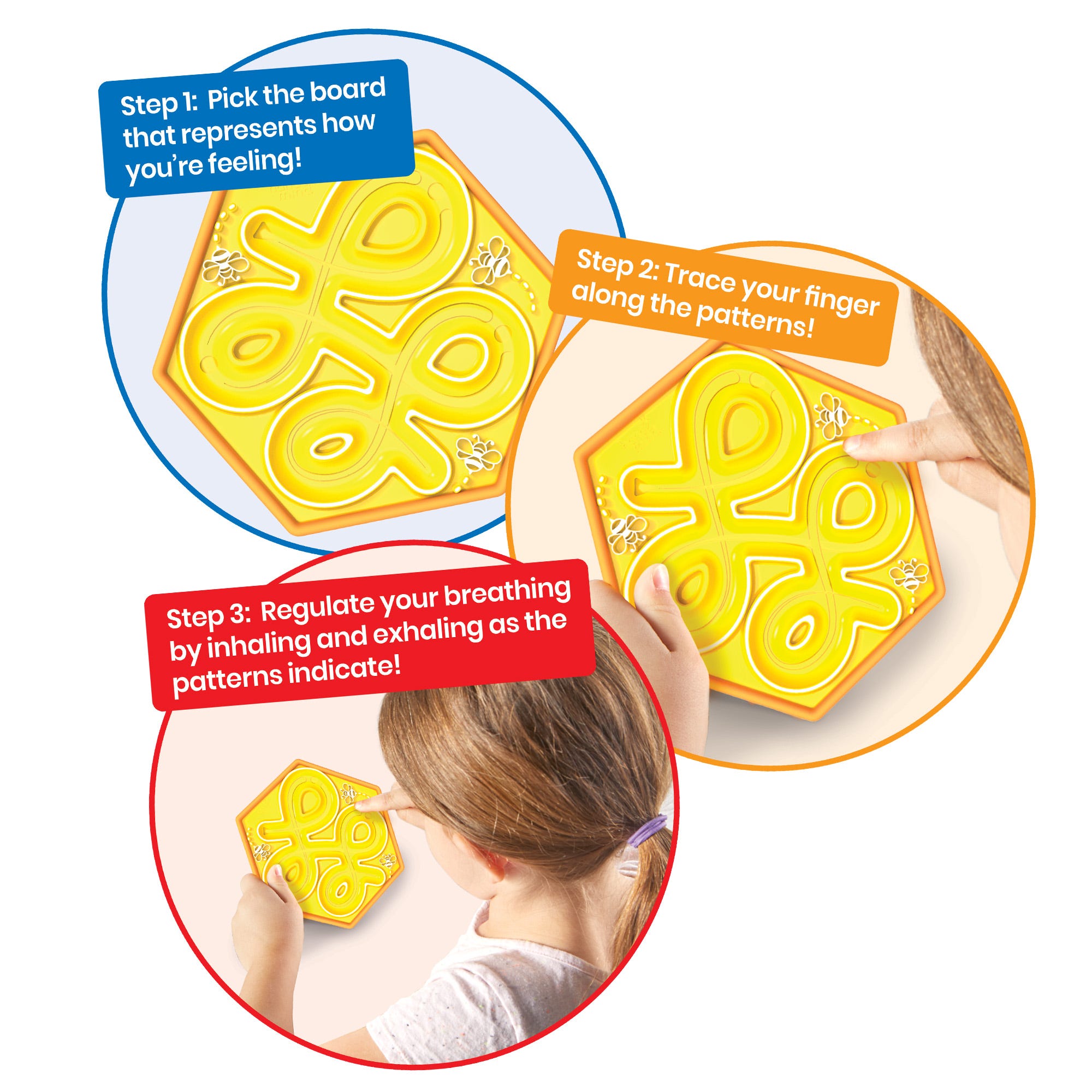 - CALMING CORNER ITEMS KIDS: The unique, calming exercises on each board are easy to follow and use tactile prompts for inhaling, exhaling, and pausing. Children will trace the design with their finger, breathing in and out as directed by the design of the board.