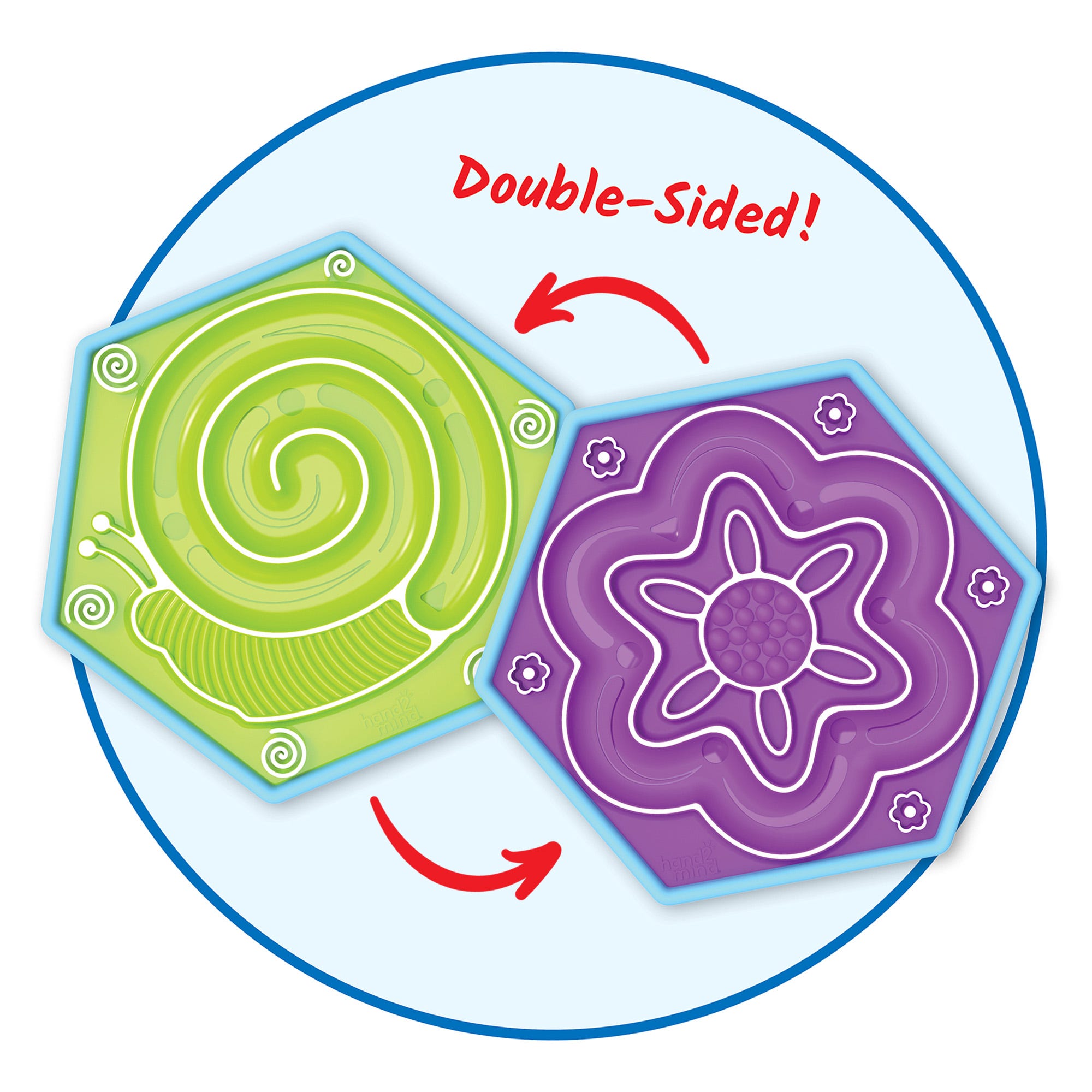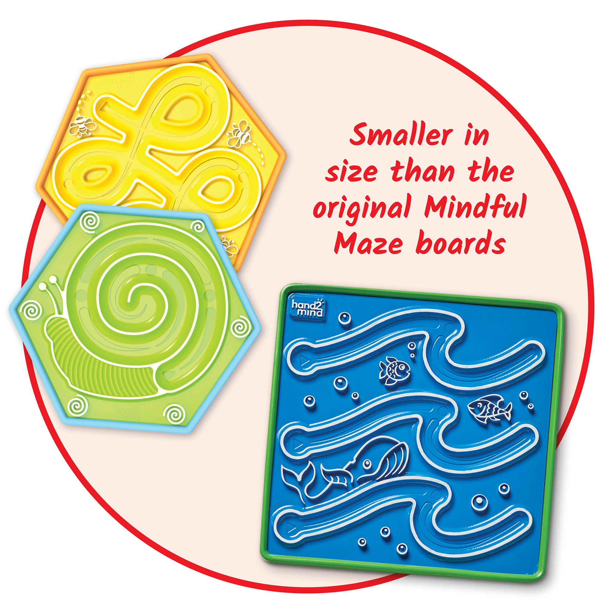 Help children learn to manage their emotions anywhere and anytime through calming breathing practice with the Mindful Maze Garden Pack! The two portable, double-sided mazes feature 4 different breath patterns to introduce little ones to mindfulness and self-management. Each maze features a fun, nature-inspired theme and a soft-touch border that's easy to hold. The mazes feature indented finger paths with tactile prompts for inhaling, exhaling, and pausing to guide children through breathing exercises from start to finish. Tracing the patterns repeatedly helps children develop fine motor skills and teaches them to maintain their focus and slow down. The breathing paths on these mazes are wide enough to fit a variety of loose materials, such as pom poms, dried beans, or rice. This expands children's multisensory exploration to allow them to see, touch, and experience breath patterns hands-on and connect with the way they are feeling. Deep, slow breathing calms children's minds and bodies, sending signals to their brains that they are safe when they feel overwhelmed or anxious. The Mindful Maze Garden Pack is the perfect visual and sensory tool to help children focus and practice self-regulation techniques. This set extends our best-selling Mindful Maze Set by incorporating a nature theme in a smaller maze. A screen free way to teach children how to sooth themselves by providing cues and physical objects to guide them through breathing exercises. Each of the Mindful Maze Boards offers a unique experience because each child needs different breathing activities for different situations. These Mindful Maze Boards would make a great addition to your calm down corner toys, classroom, daycare, or home calming corner! For over 55 years, hand2mind has encouraged hands-on learning and discovery, driving deeper understanding and helping children unlock their full potential. hand2mind is a pioneer in social emotional learning products that help build mindfulness for kids as well as how to deal with their own emotions. From kindergarten to middle school, hand2mind has you covered with products designed to enhance learning in the classroom and the world around us. Through innovation and creation, we strive to find new ways to encourage students in math practice, literacy activities, STEM education, Social Emotional Learning, and more!