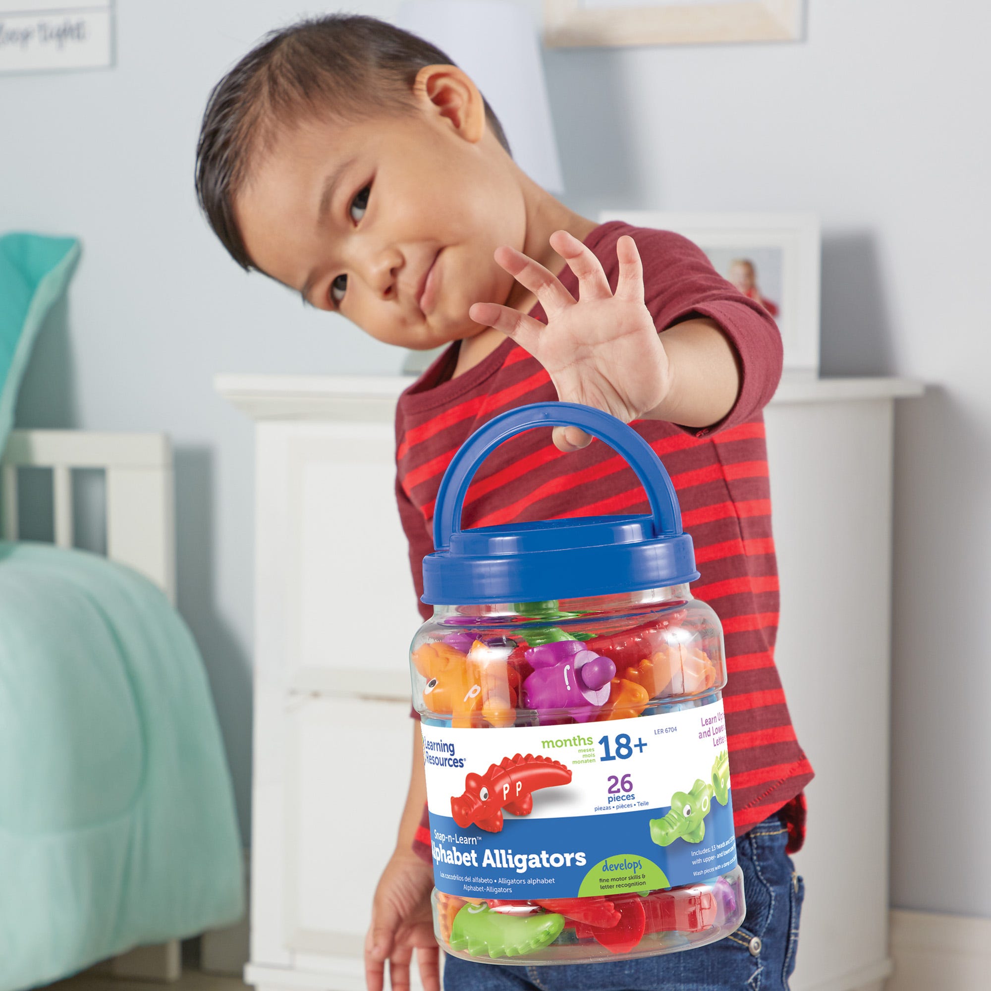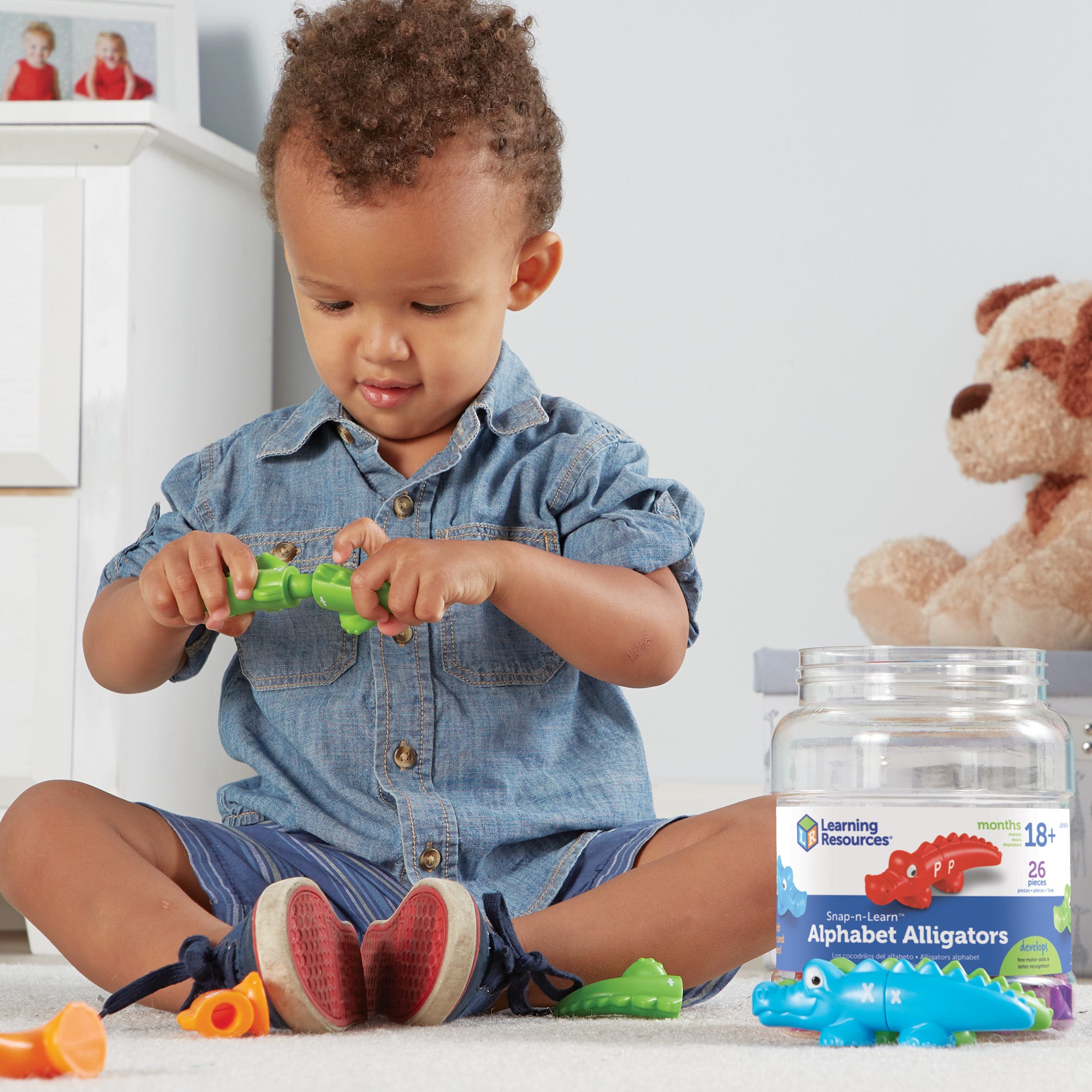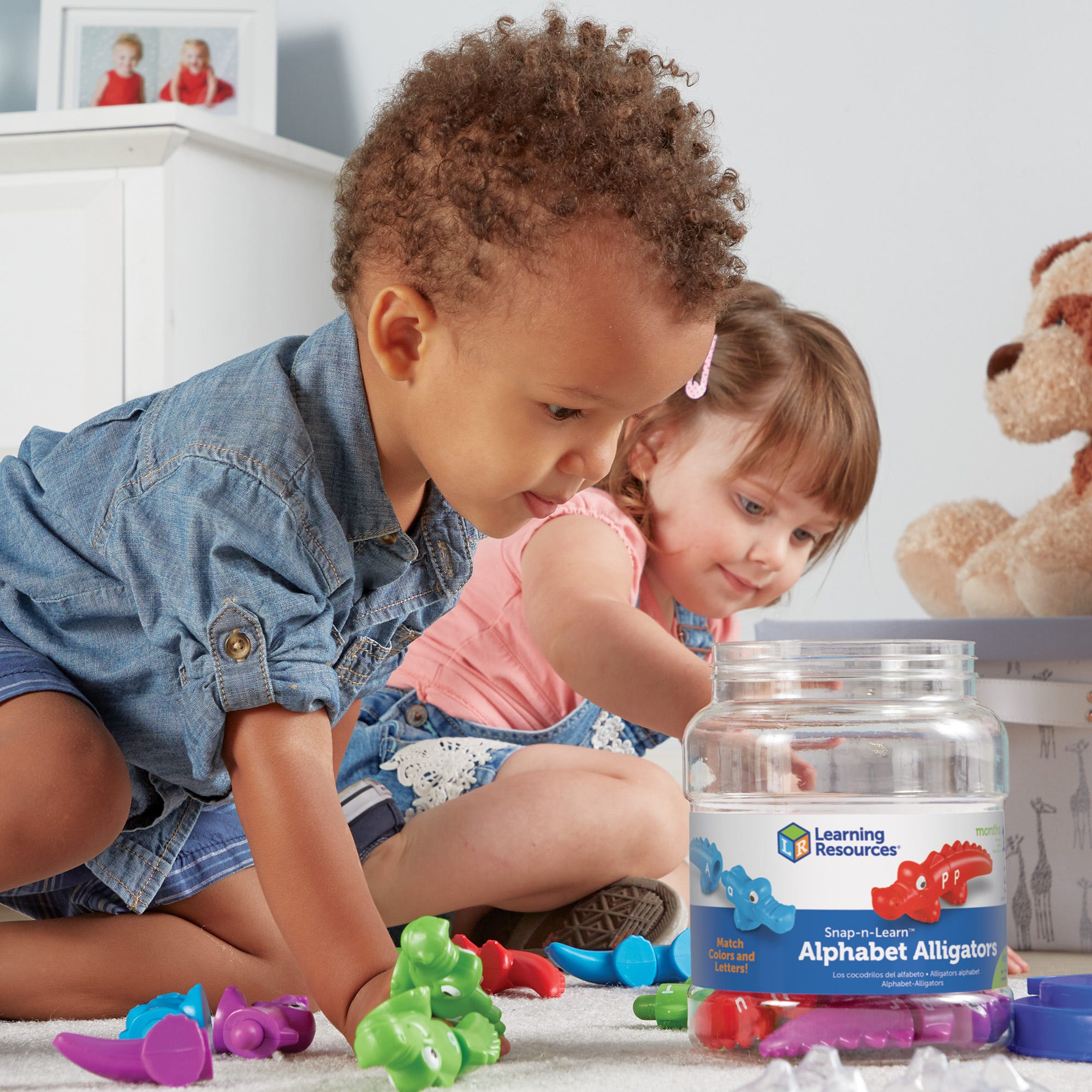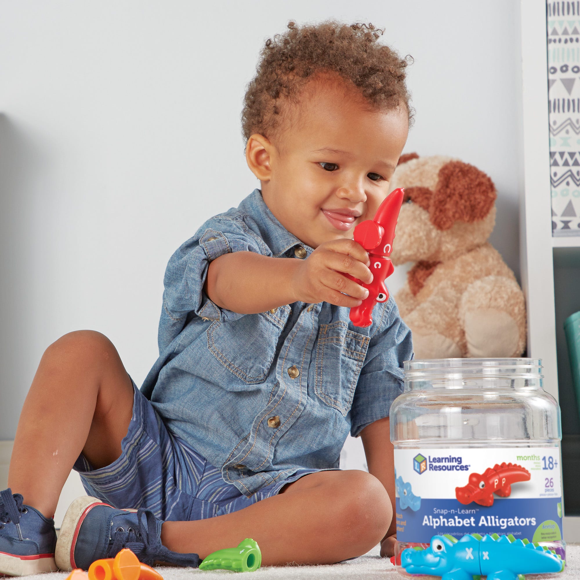 Matching uppercase and lowercase letters is a snap with these two-piece gators! Each color-coded gator is marked with uppercase or lowercase letter on the head or tail. Use the color to help make an alphabet match! , , Includes:, 13 each of heads and tails, marked on both sides. Double-sided to include all 26 letters.