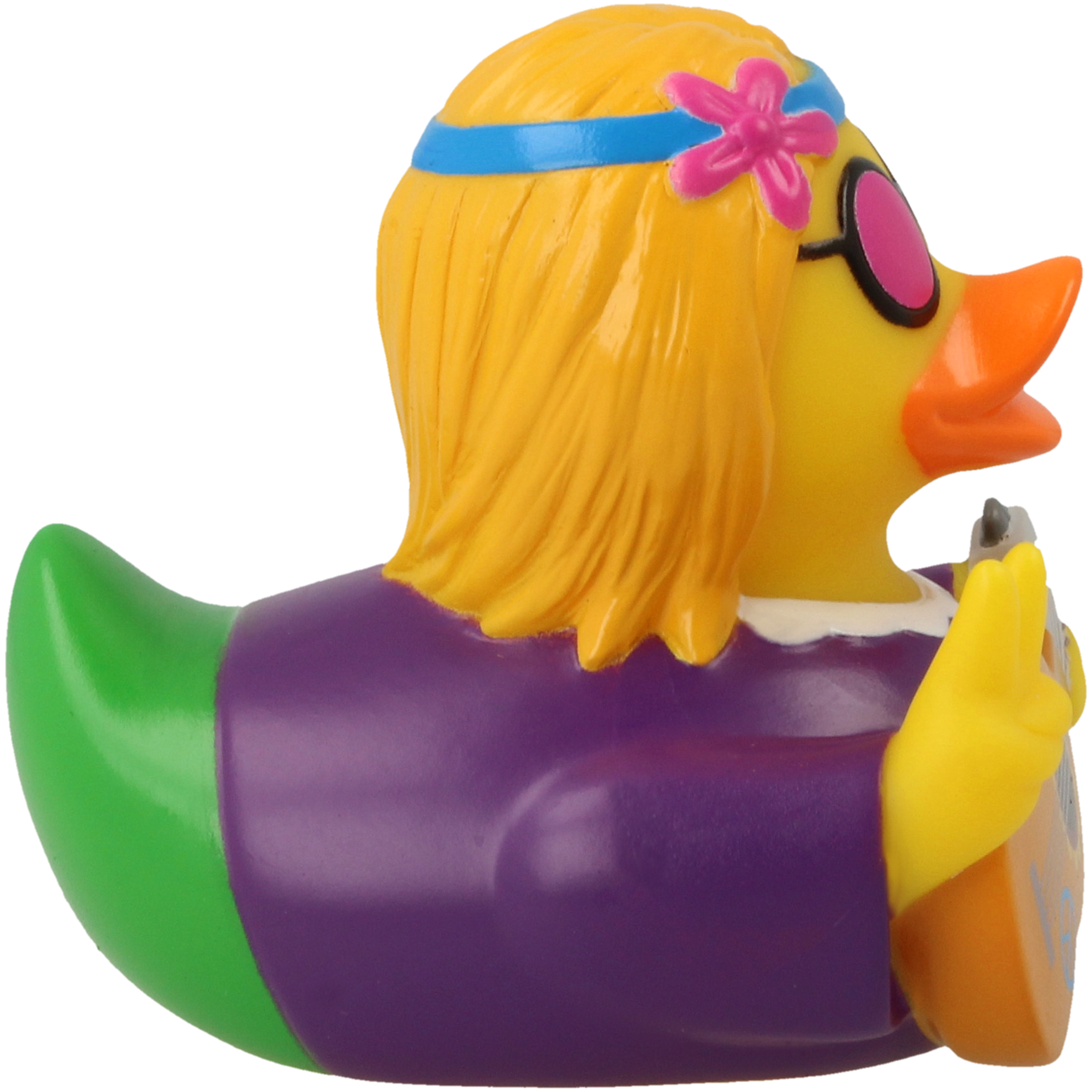 Hobby: stroking flowers being a judge is her job, which is why our Hippie woman squeaky duck just needs some flower power in her free time! that's why she loves her double Life as a Buttercup (that's her Hippie name). she spreads joy and love wherever she appears with her guitar and starts To play.?? there is a Rumour that this squeaking duck once lived vegan, but in 2011 had a hamburger relapse and that she knows all the flowers by name! what a great woman! The '60S were a long time ago.?? but once a Hippie, always a Hippie.?? our Hippie wife duck is a lady who needs a balance to work.?? hard at work and tender at leisure! Size: 9 x 8.5 x 7.5 cm (w x H x d) weight: 0.05 kg rubber duck approx 6-8 cm - collectible rubber ducks designed by Lilalu. Each duck is free of toxic ingredients, and therefore also suitable for babies and toddlers.