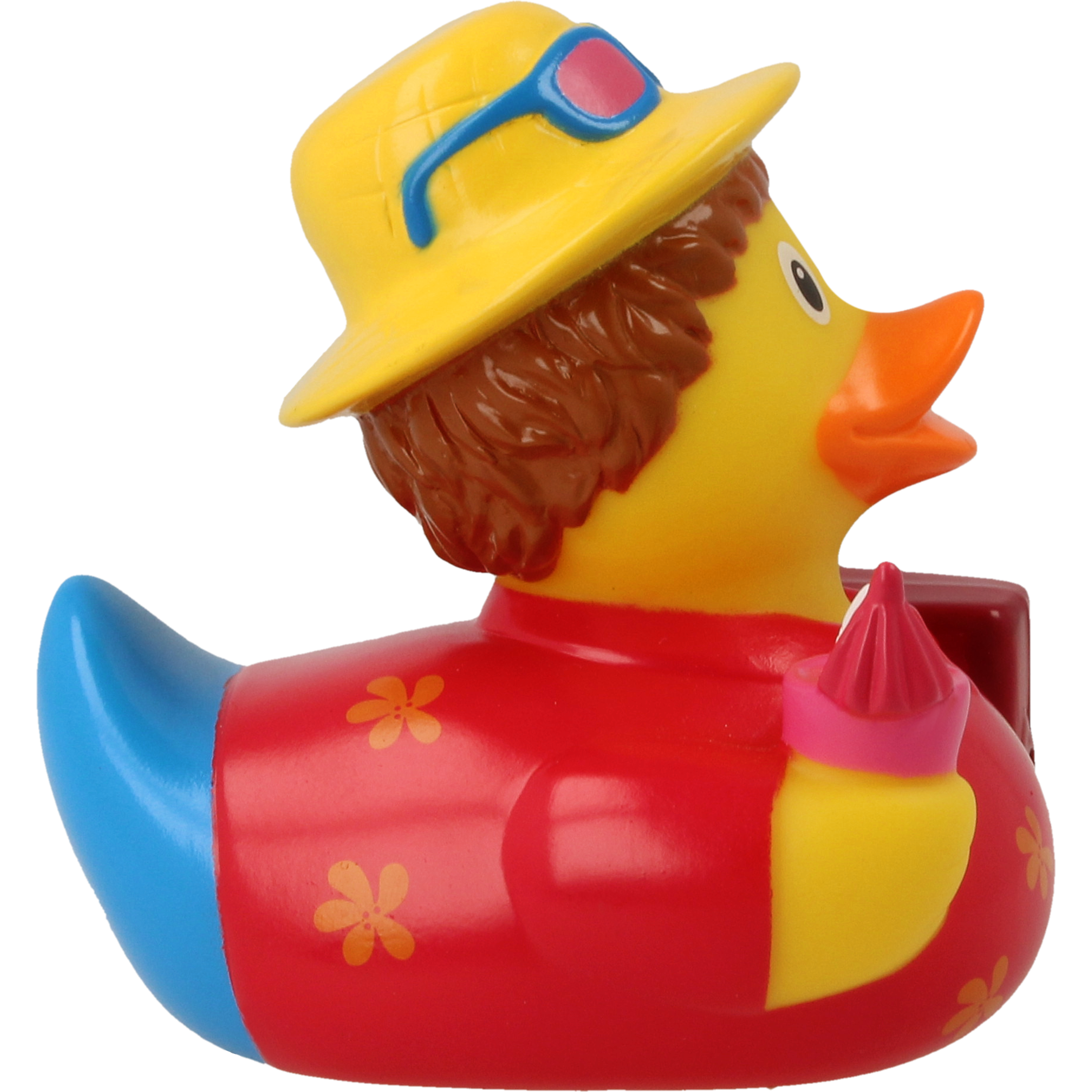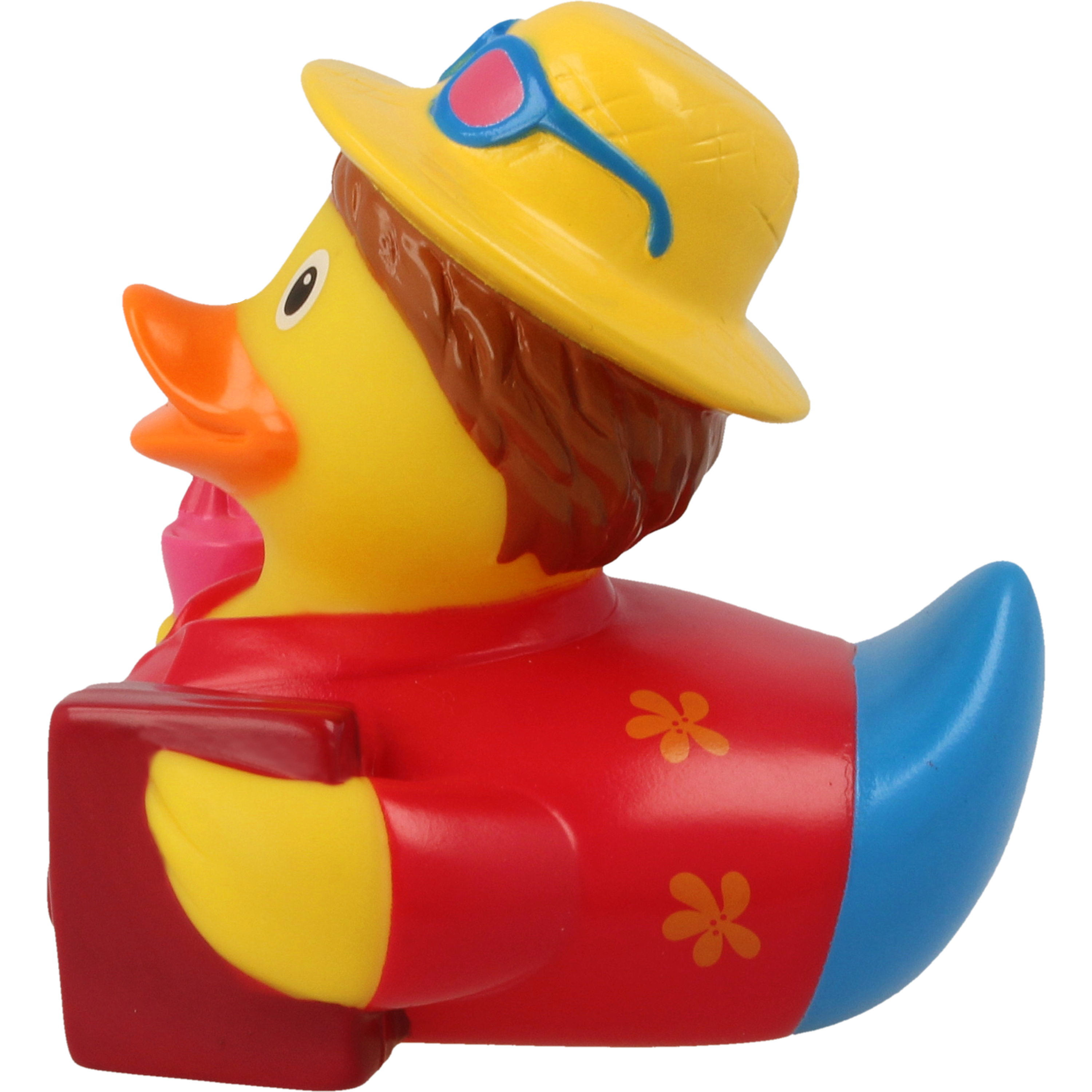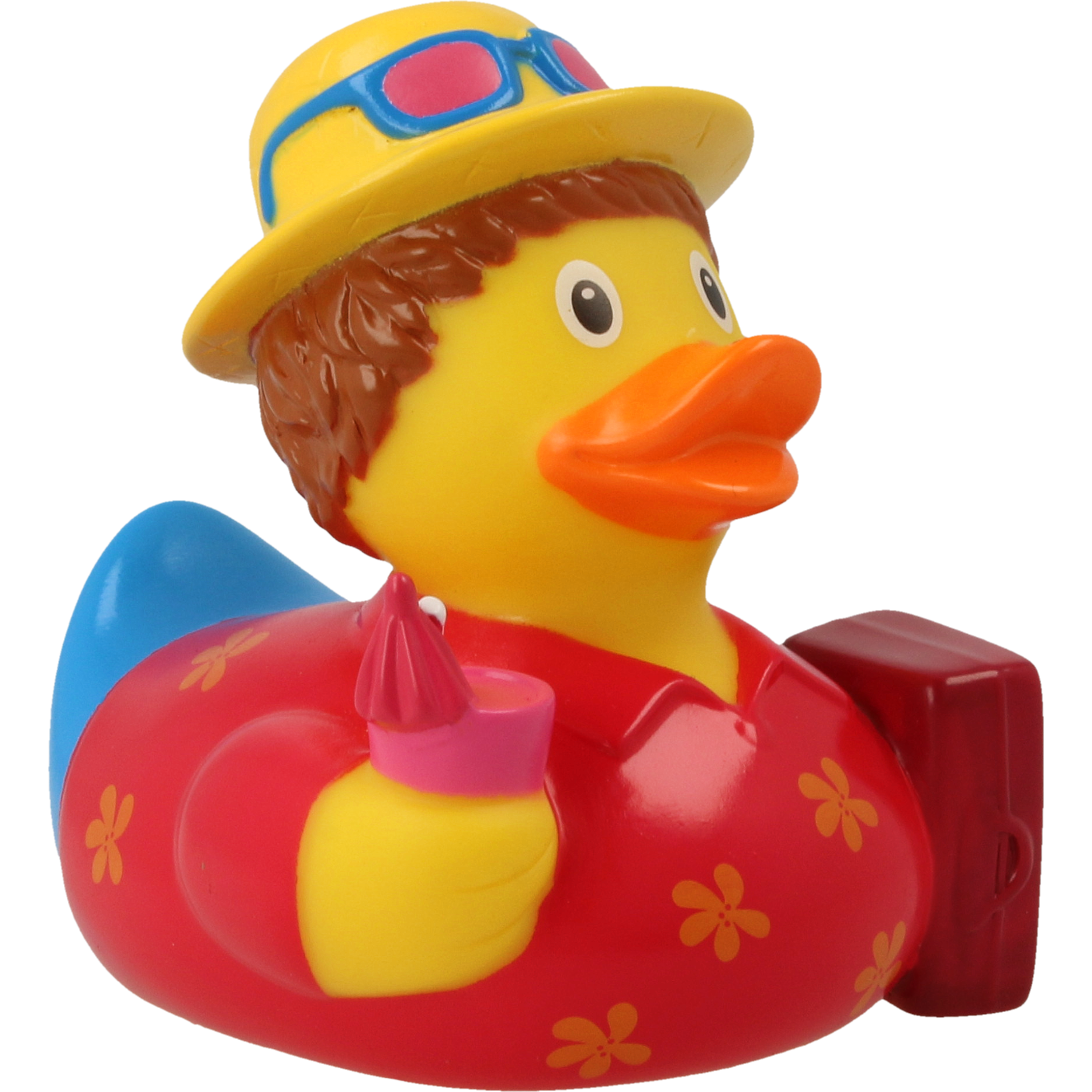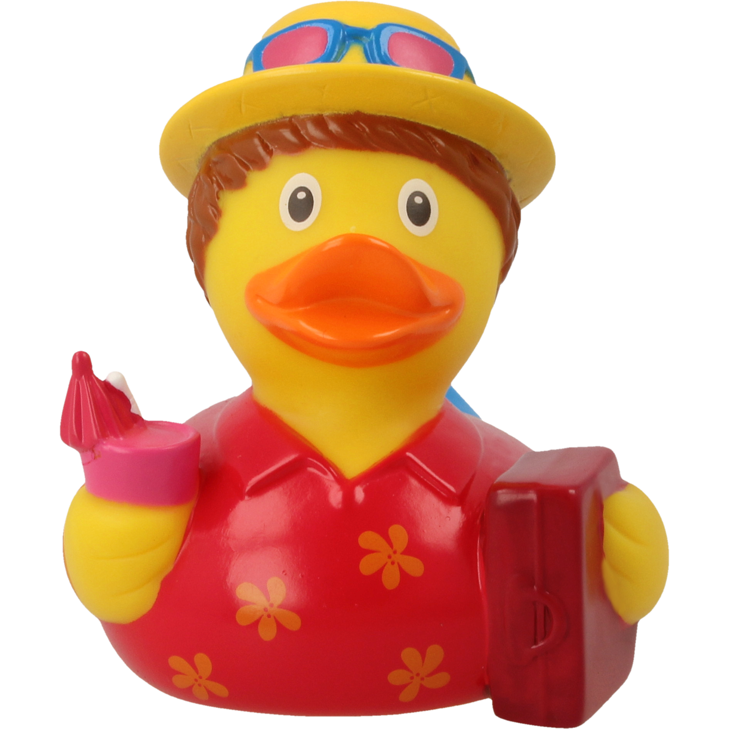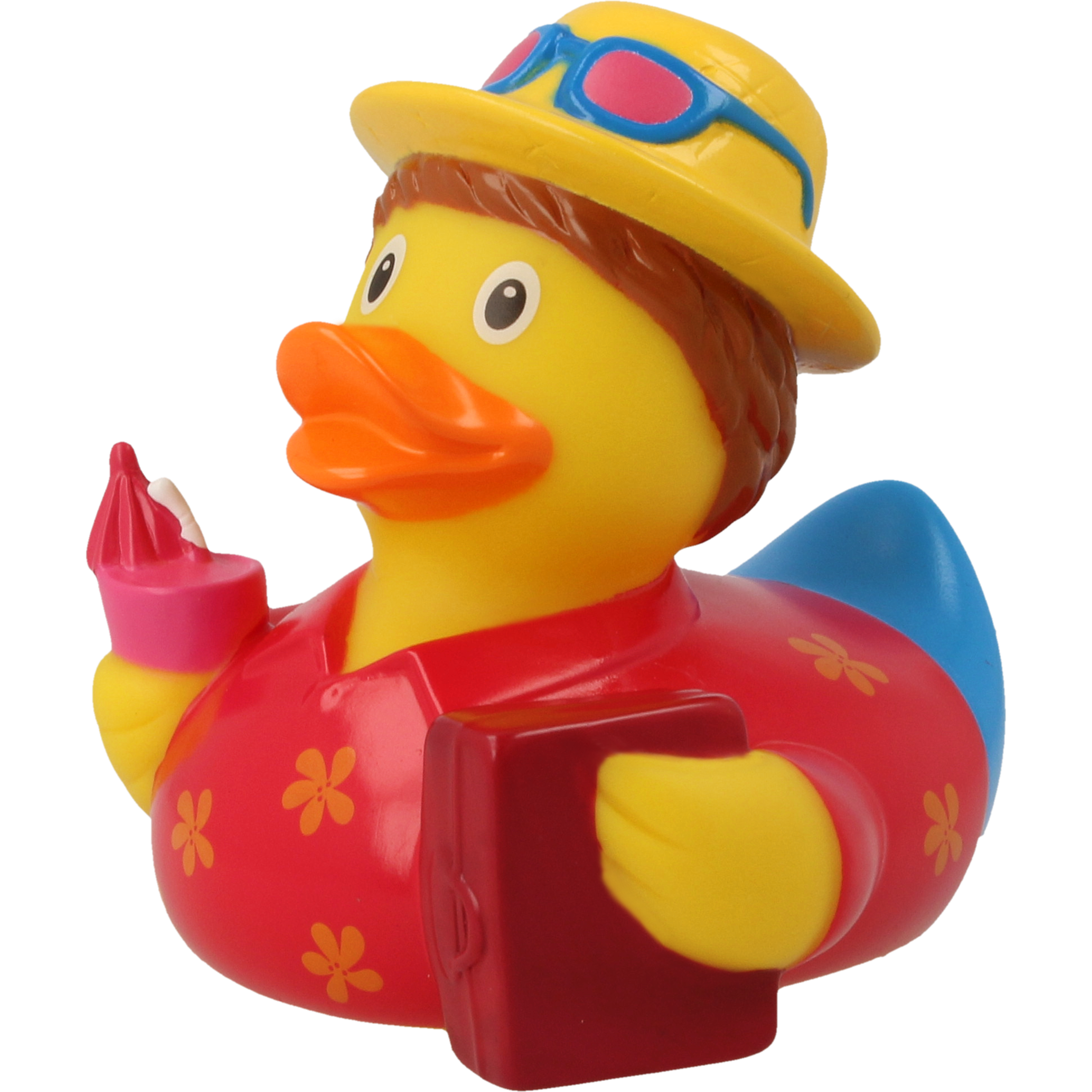 Holiday rubber duck is a real globetrotter and is able to say @I am hungry@ and @Where is the toilet?@ in over 40 languages. At pool you can see him with his tight speedos or hanging at the hotel bar with cocktail in hand. He is a care sitter.