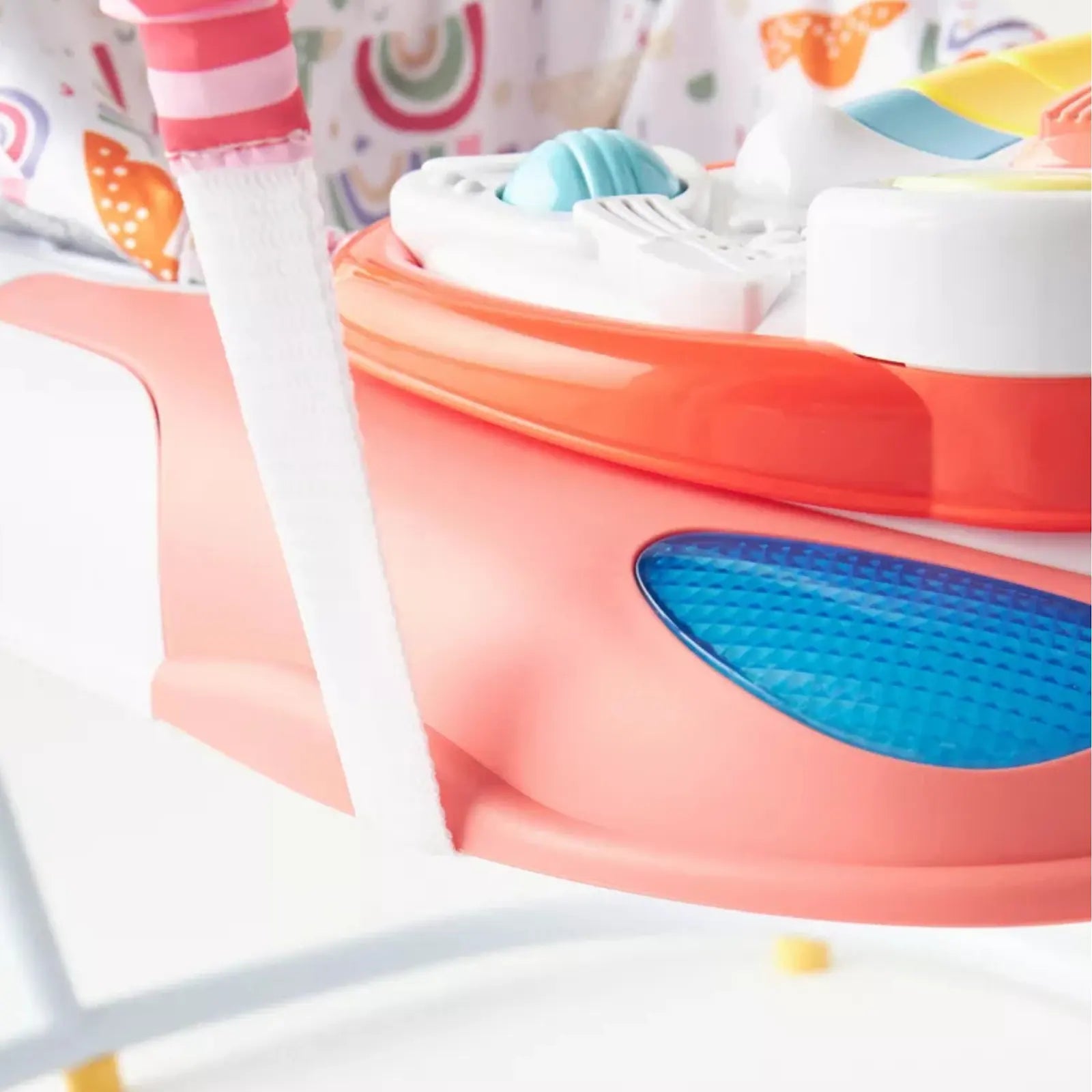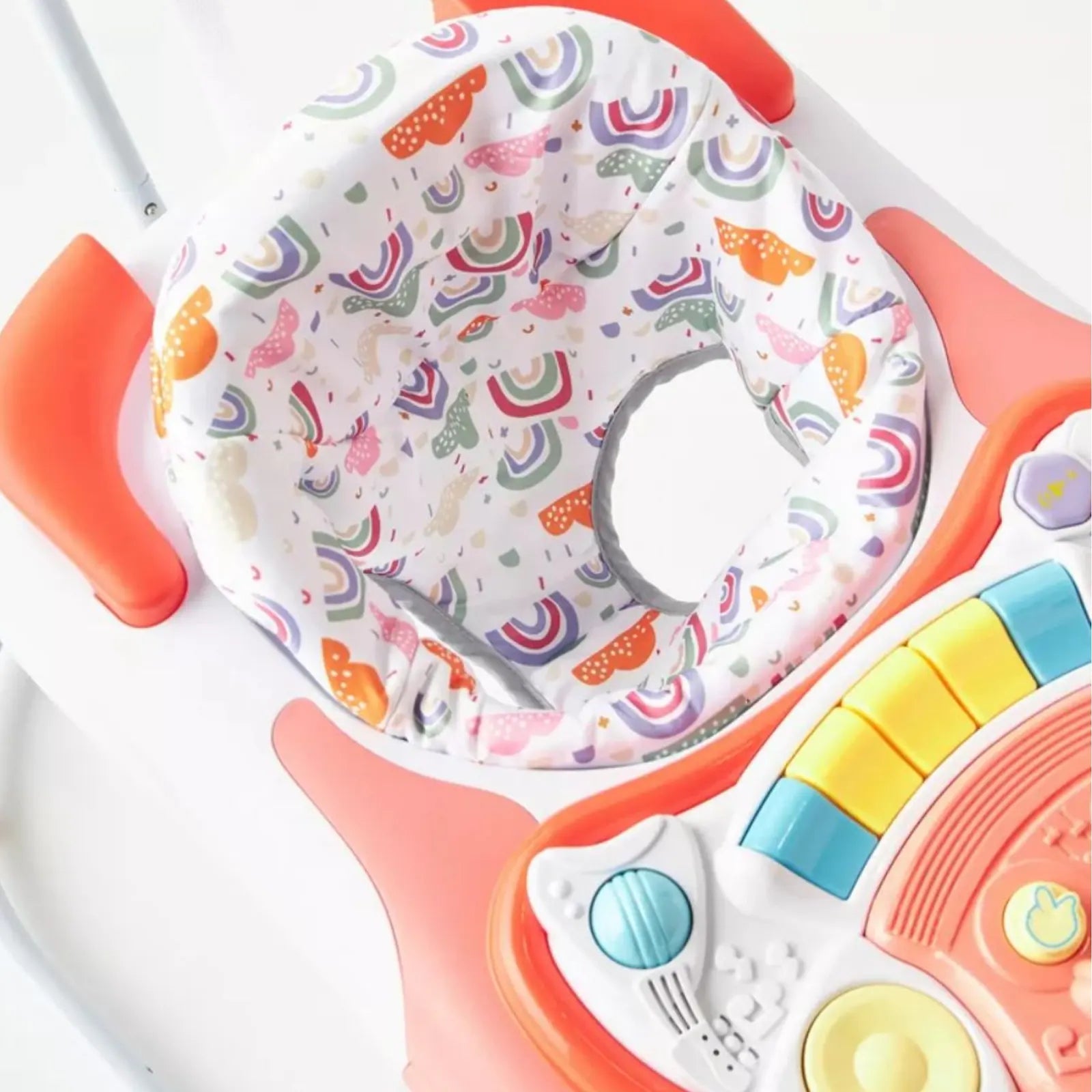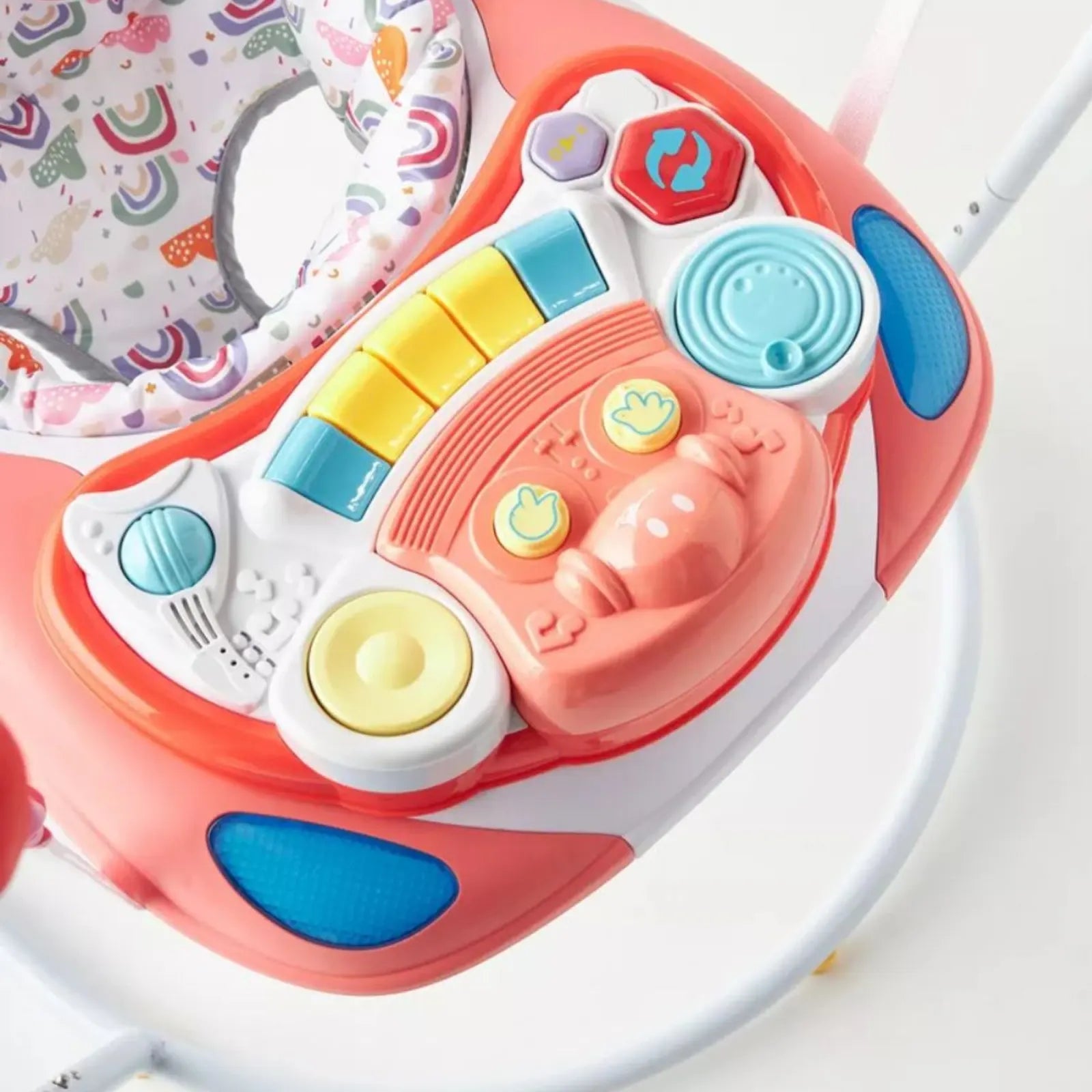 This fun-filled activity center features a musical play tray with colorful buttons, cheerful lights, and melodies that encourage sensory and motor skill growth. The secure bouncing frame helps strengthen leg muscles while your baby plays safely. With soft padded seating, adjustable height levels, and sturdy support springs, your baby can enjoy hours of safe, active fun. Lightweight and easy to assemble, it’s perfect for babies aged 6 months and above, both boys and girls.