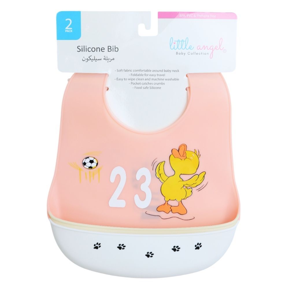 - The Little Angel Baby Silicone Bib 2-piece Set keeps your little one clean during mealtime.