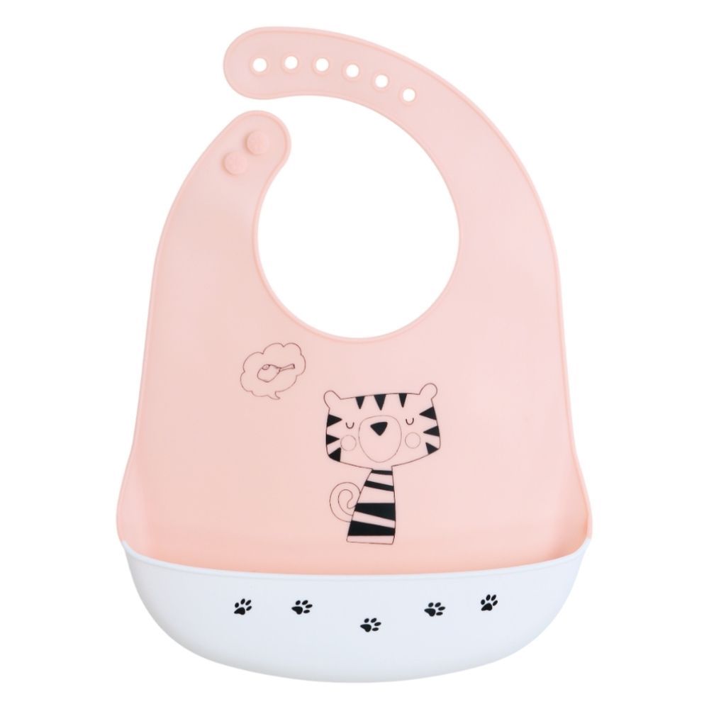 Mealtime just got more playful with the Little Angel Baby Silicone Bib 2pc Set – Tiger & Football Print!