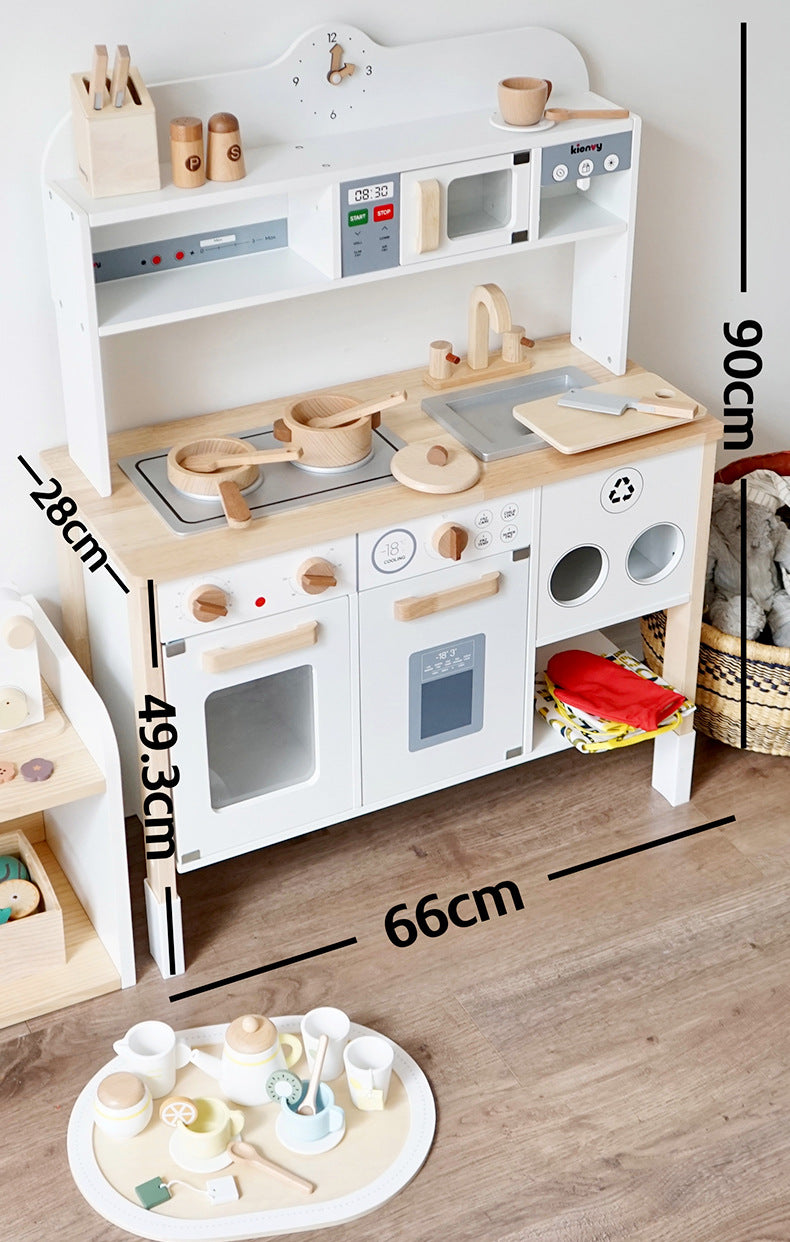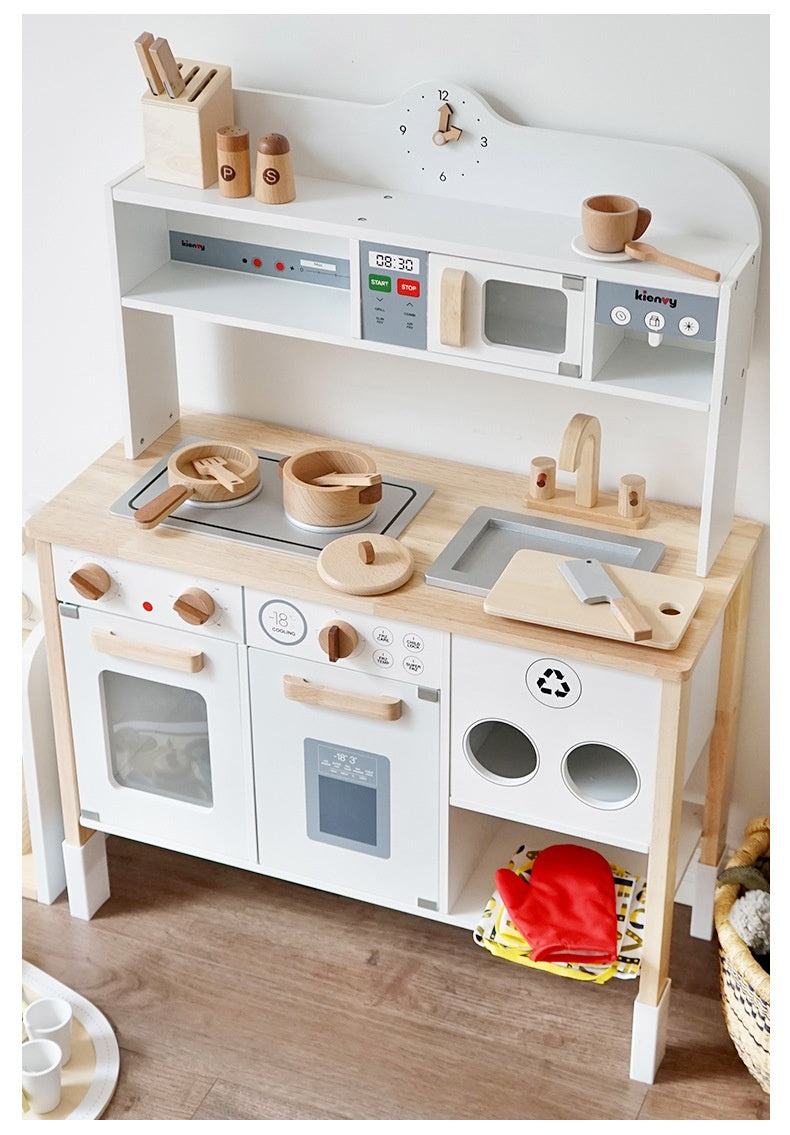 - Complete Pretend Set – Includes oven, stove, microwave, sink & storage shelves.
