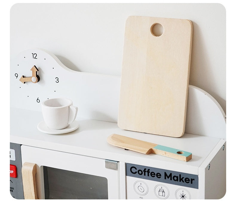 Little Angel Kids Wooden Kitchen Interactive Pretend Play Set - White