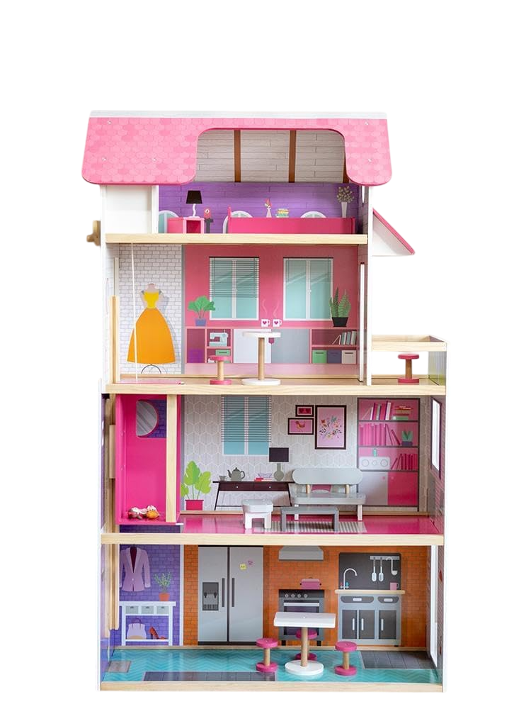 - Multi-Level Dollhouse – Includes bedrooms, living room, kitchen & dining area.