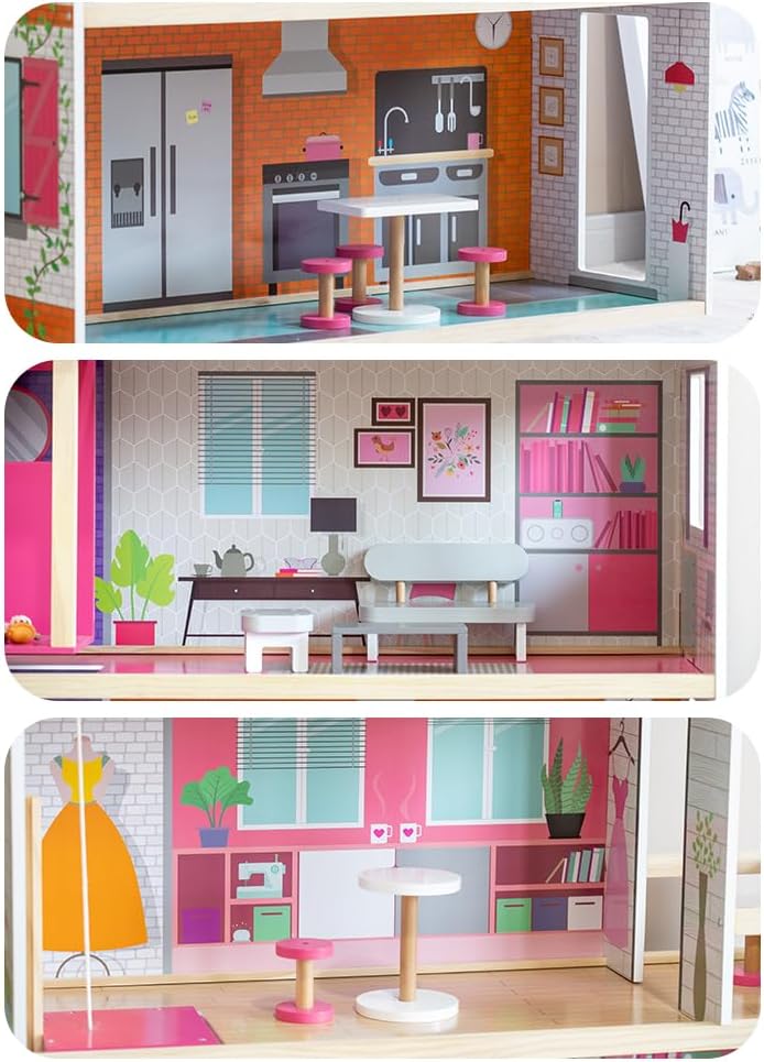 Bring Imagination To Life With The Little Angel Kids Wooden Dollhouse Playset, A Beautifully Crafted Multi-Level Pretend Play House Designed For Toddlers And Kids. Featuring Multiple Floors, Colorful Rooms, And Stylish Furniture, This Educational Wooden Toy Encourages Storytelling, Role Play, And Creative Playtime. Made From Eco-Friendly, Non-Toxic Wood, It Is Durable, Safe, And Perfect As A Gift For Children Who Love Imaginative Adventures.