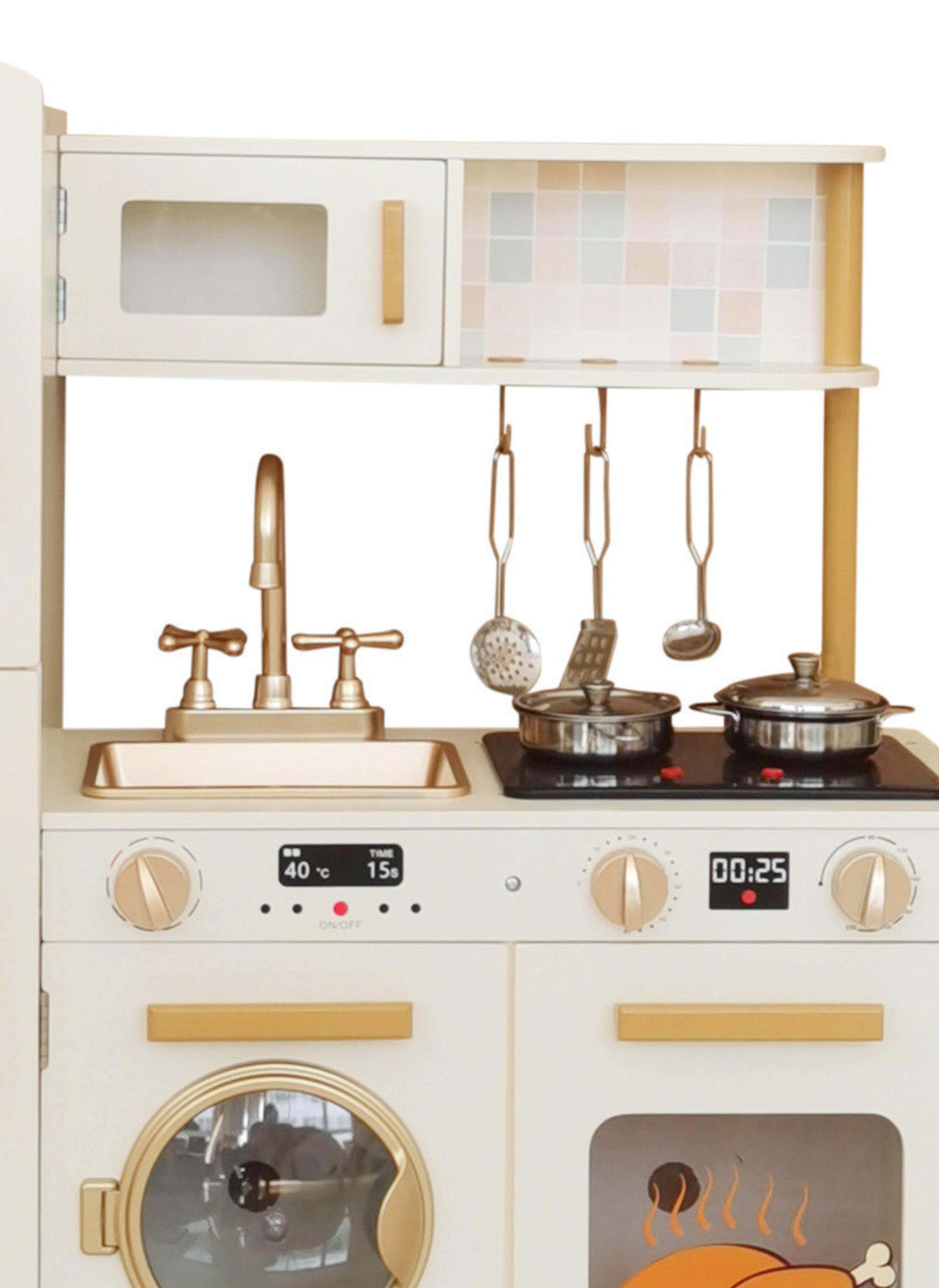 The Little Angel Kids Wooden Kitchen Set (W08811) Is A Premium Pretend Cooking Playset Designed For Toddlers And Kids. This Deluxe Kitchen Includes A Fridge With Ice Dispenser, Stove, Oven, Sink, Microwave, And Hanging Utensils, Making Role Play Fun And Realistic. With Interactive Knobs, Movable Doors, And Modern Details, This Educational Wooden Toy Kitchen Encourages Creativity, Storytelling, And Motor Skill Development. Crafted From Eco-Friendly, Non-Toxic Wood, It’S Safe, Sturdy, And The Perfect Gift For Little Chefs.