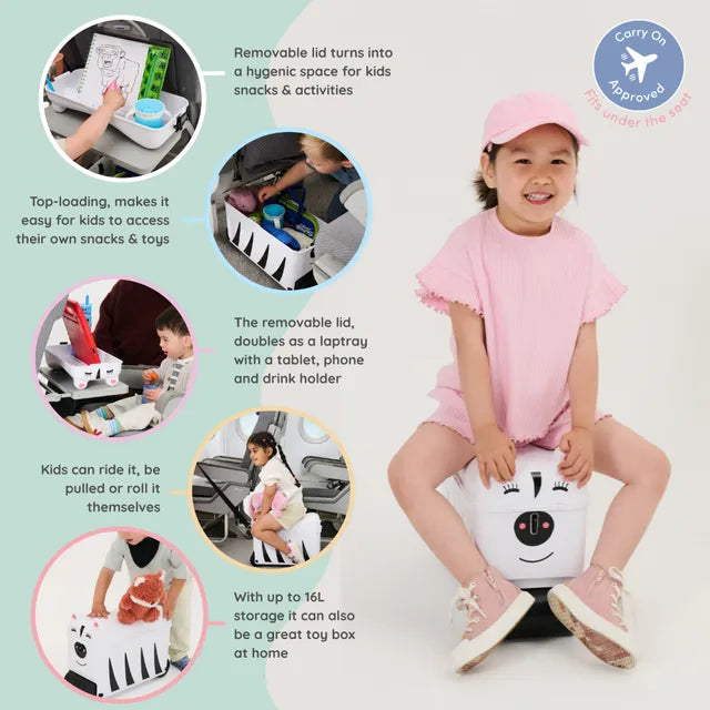 Little Rolla was designed for busy little travellers. This ride-on suitcase combines fun, function, and convenience for families on the move. It features two wide wheels and a low center of gravity, providing a stable and practical ride across different surfaces. The removable, top-opening lid allows for easy packing and unpacking, giving little ones quick access to their toys and snacks—no more suitcases spilling across the airport floor! The lid also turns into a multifunctional activity lap tray, complete with a tablet and cup holder to keep children entertained while waiting for flights. It creates a clean, hygienic space for play or snacks in busy locations like airports, making Little Rolla the perfect travel companion for young adventurers.