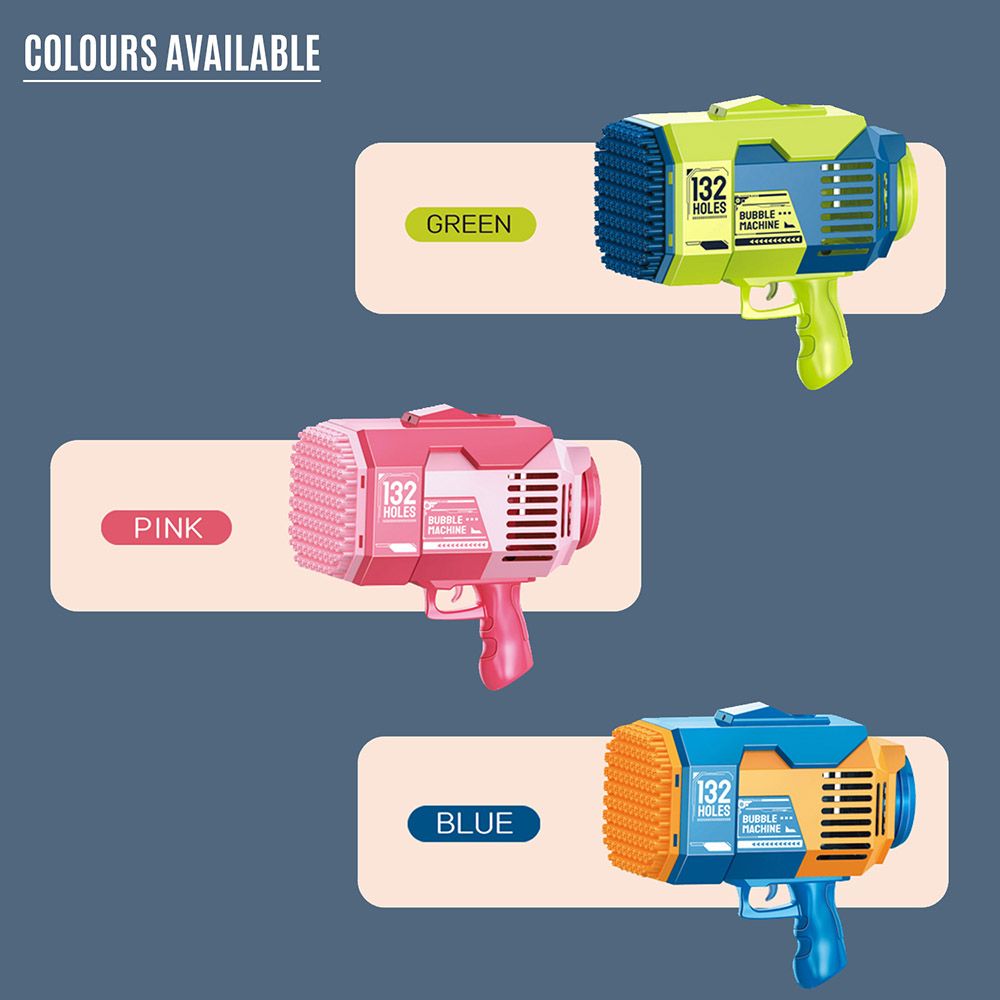Little Story Bubble Machine Gun for kids comes with 132 holes and colourful light. The bubble gun is made of high-quality ABS material, environmentally friendly durable safe to use, no sharp edges, the shell is thickened and anti-fall, so that children can play more at ease very suitable for children play and entertainment as well as adults. Comes with rechargeable 2000mah Battery, the bubble is sustainable use and eco-friendly!