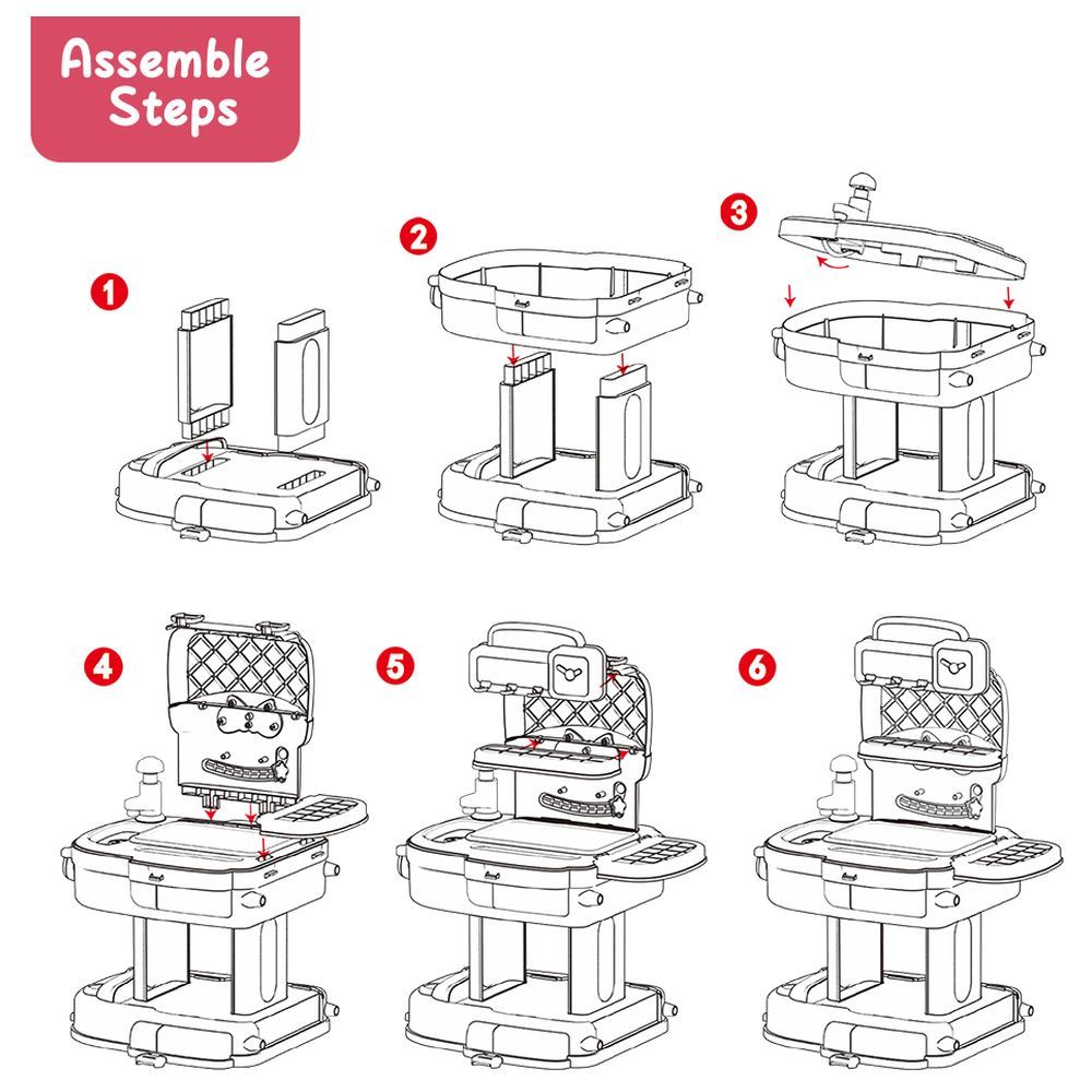 Little Story 34 Pcs Kitchen School Bag is a great 2-in-1 modes Role Play Educational cum fun toy set for your li 'l one to improve their hands-on ability and develop imagination. Help li 'l Chef to understand and use Kitchen Equipment, This Kitchen toy let them to have a deeper understanding of Restaurant in role-playing. Give your little chef 5 minutes to prep their favorite pretend meal and think out how to present it to you. Create a mini cooking show by taking video of them recreating their pretend dish, talking you through each step so you can make it too! Continue the pretend play by making "episodes" of the cooking show to watch with family and friends. Make sharing the clean-up responsibilities fun with your little one.