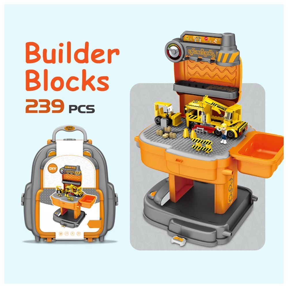 Little Story 239 Pcs Construction Site Block School Bag is a great 2-in-1 modes Role Play Educational cum fun toy set for your li ’l one to improve their hands-on ability and develop imagination. The Construction Site kit can cultivate children's hands-on ability and communication skills; stimulate children's imagination and bring your children hours of fun and safe imagination games. Make sharing the team-up responsibilities fun with your little one.