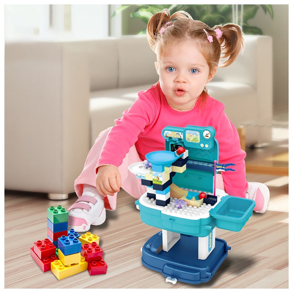 Little Story 52 Pcs Theme Park with slide Set School Bag is a great 2-in-1 mode Blocks with Role Play Educational cum fun toy set that help to ensure a good relationship between a child and Parents, it is essential to educate children in fun way about the precautions to be taken during visiting Fun Park and it is also necessary to teach children what is the importance to stay together in such places. This will positively shape them to become more organized, but also how the child relates to people around them. Children will enjoy hours of developing social skills such as Grooming personal and social responsibility.