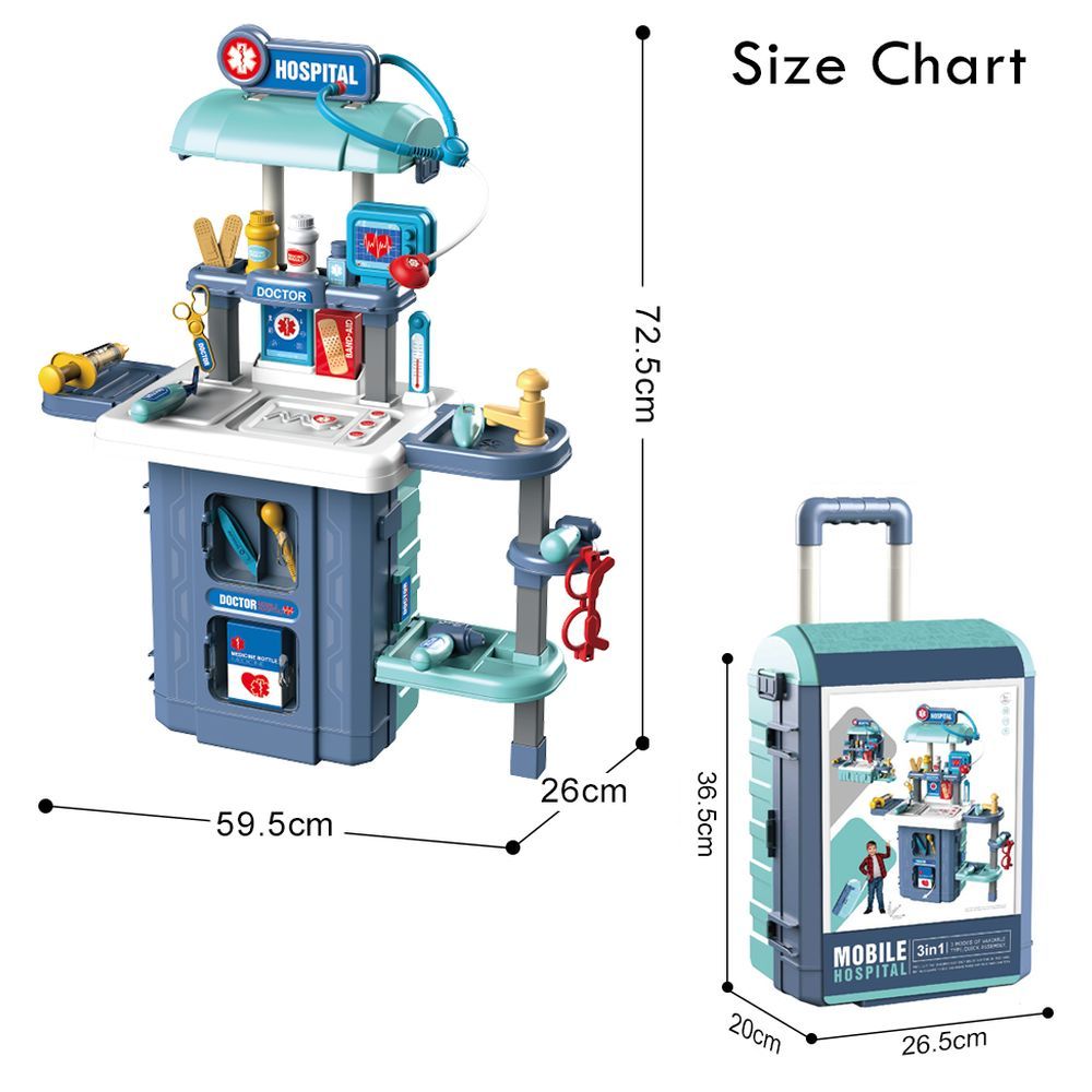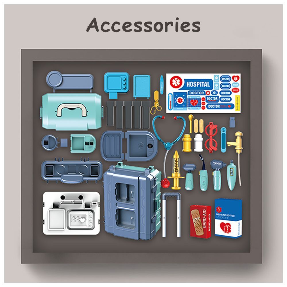 DIY Hospital Set comes in a luggage case as Mobile Hospital, Tabletop and Standing Mode with Hand Wash along with Light and Sound with Insulation strip to save battery. Best for your li 'l one as birthday gifts, Christmas gifts, party gifts, Children's Day gifts, and New Year gifts.