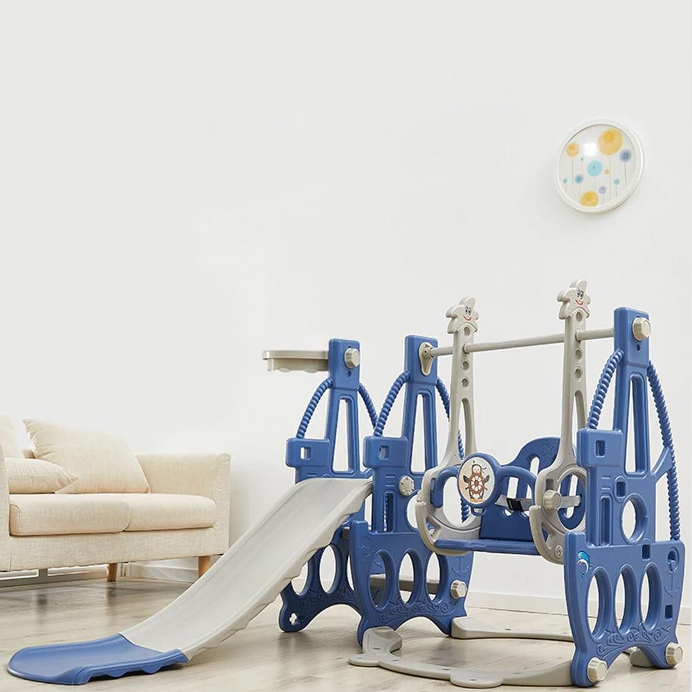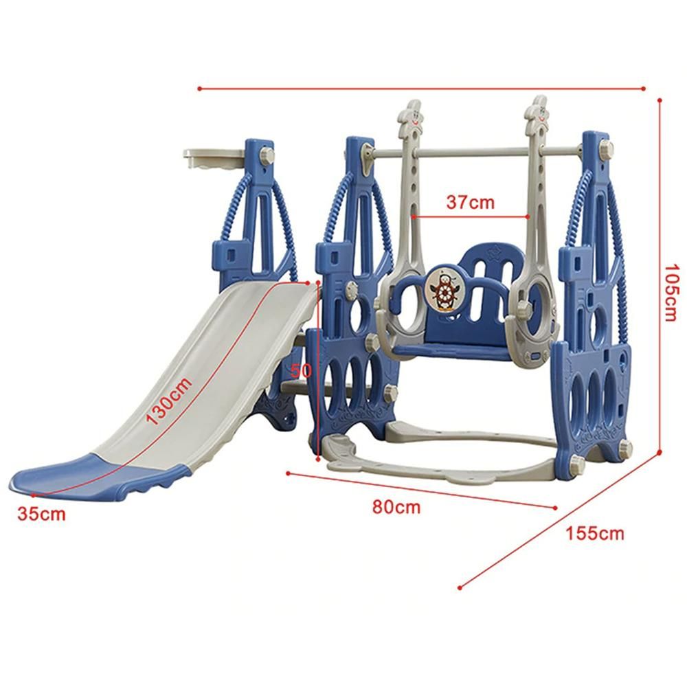 - 3-in-1 playset includes slide, swing, and hoop for indoor and outdoor fun.