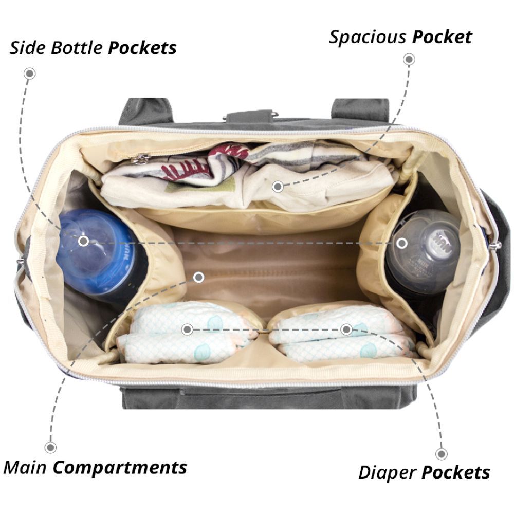 The insulated side pocket and the tissue holder pocket let's you take everything you need for the baby. This Amazing Nappy Bag is water and dirt resistant. The front zippered pocket is easy to access anytime and the Anti Theft pocket at the back is where you can safely put your valuables and enjoy stress free