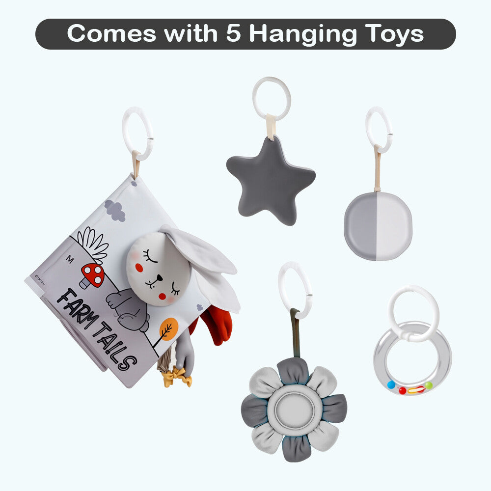 - 5 Engaging Toys for Sensory & Motor Development: Comes with a detachable toy bar and multiple hanging toys that encourage your baby to reach, kick, and grasp. Each toy promotes visual tracking, hand-eye coordination, and tactile learning, making playtime both fun and educational.