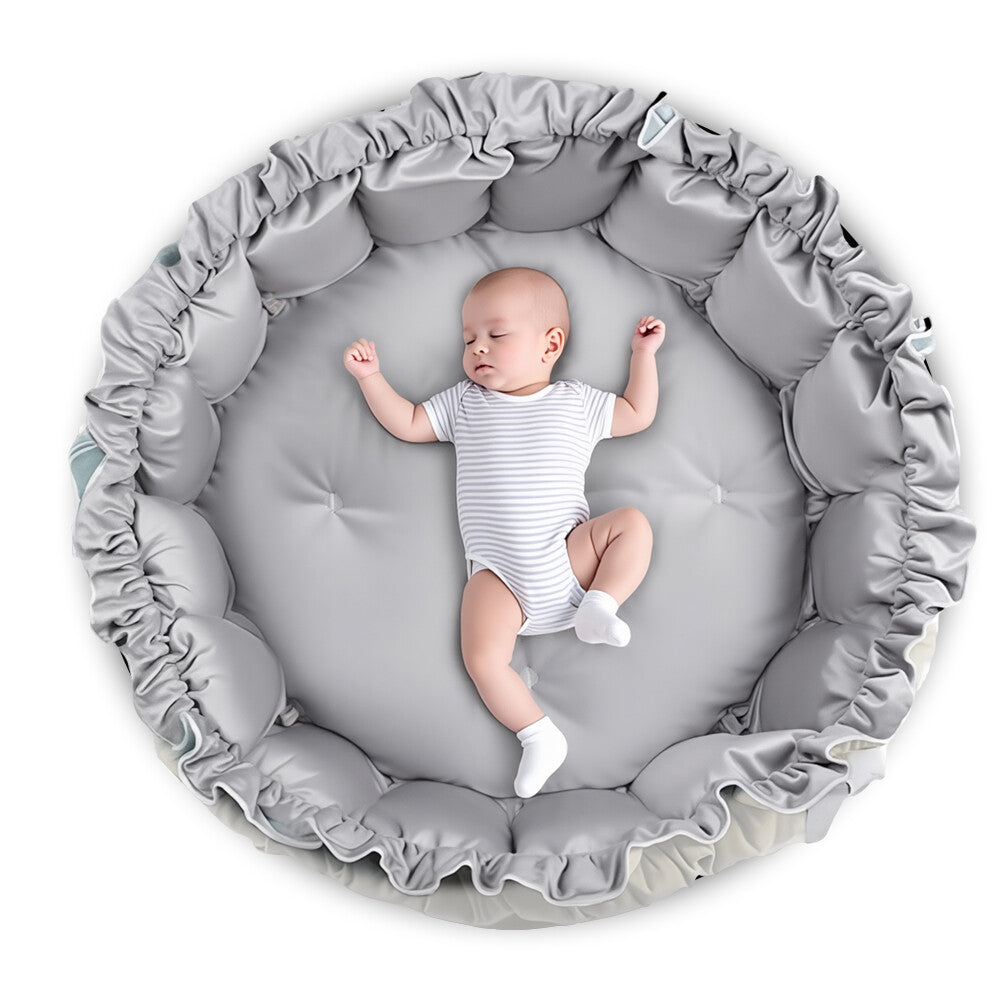 Equipped with a detachable toy bar and multiple hanging toys, this play gym keeps your baby entertained while encouraging sensory development and motor skills. The toys inspire curiosity, visual tracking, and hand-eye coordination as your little one reaches, grasps, and kicks with joy. When converted into a ball pit or baby nest, it becomes a secure zone for independent play — ideal for babies right from the newborn stage.