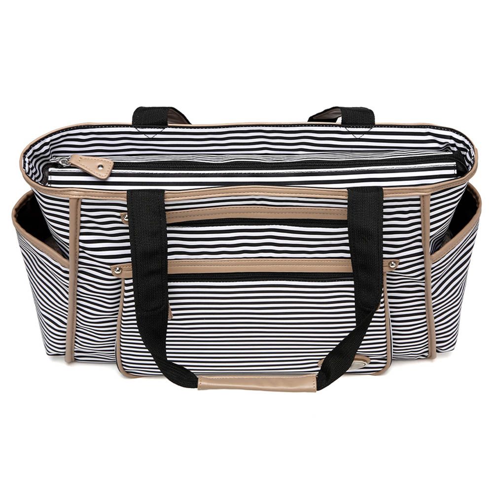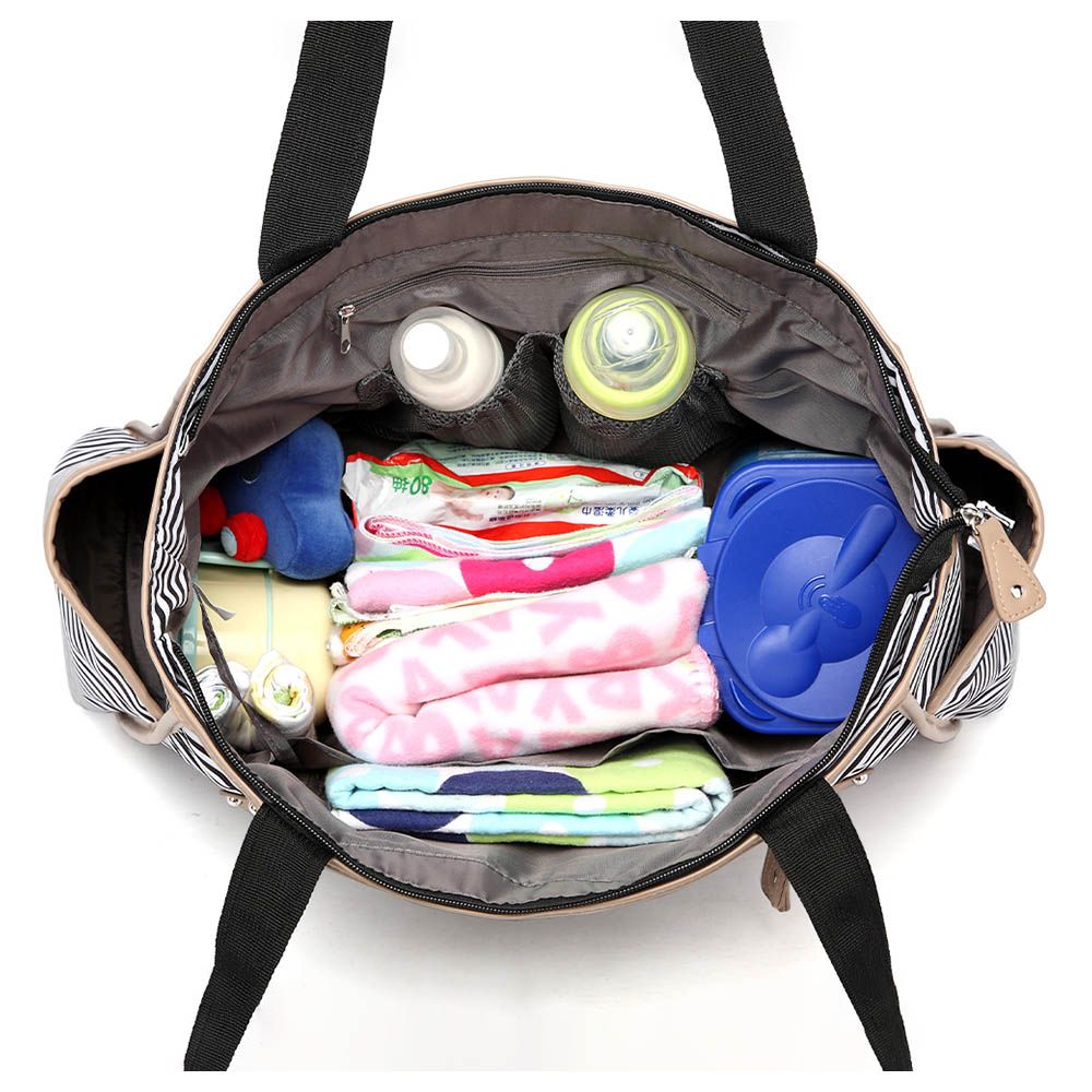 - Durable and Functional: The large diaper bag tote is crafted with polyester material and interior lining trimmed with easily wipes clean coating.