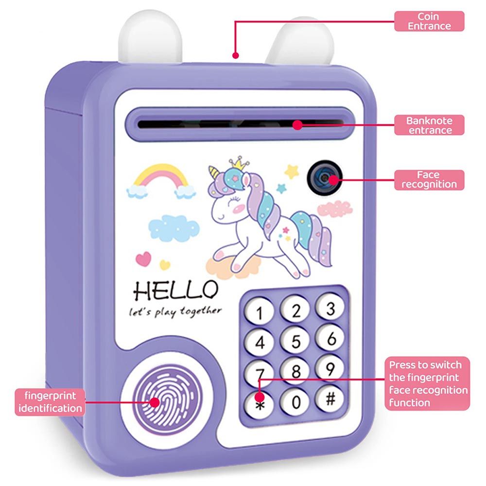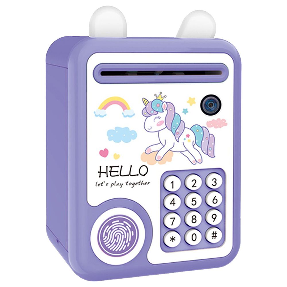 Little Story Cute Piggy Bank With Fingerprint Lock And Music - Unicorn Purple
