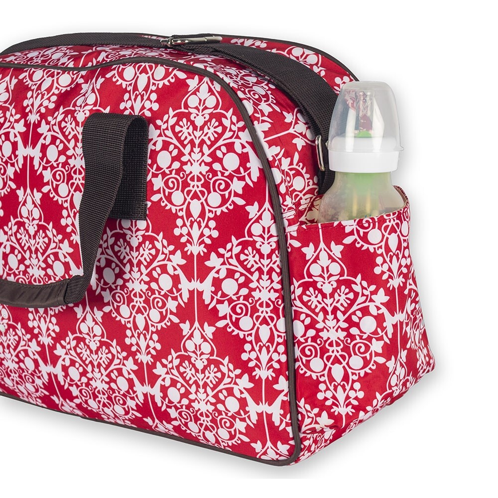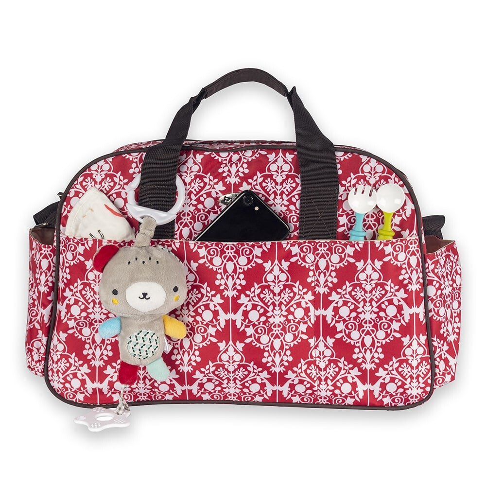 Defined by its beautiful patterned design, this little story diaper bag is a great diaper bag for the new mums. With hard base and subtle hardware details, little story diaper bag is perfectly proportioned. A wide opening into a spacious interior with 8 multiple pockets for easy access to your safely stored essentials. Featuring a luxurious over-sized changing mat, this is a perfect diaper bag