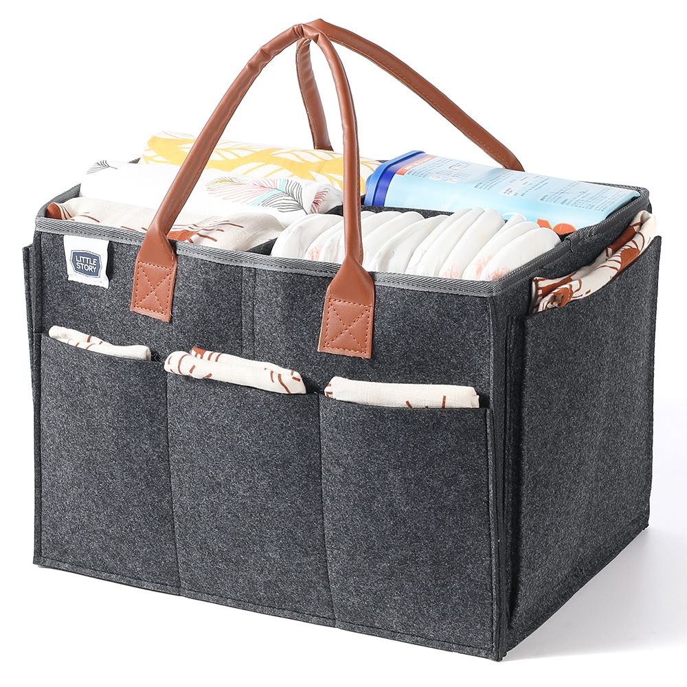 Little Story Diaper Caddy is a multipurpose organizer to help you to put those cute Rompers, Nappy, Wipes, Cream, Baby Toys, Pacifiers, Milk Bottles and everything you need to have an easy access! The strong vegan leather handles are soft to hold and add to the looks. The partitions can be removed according to your needs. The caddy features multiple pockets for easy storage and an additional Pouch for the carrying essentials along. This is a portable multipurpose organizer which can be easily folded and packed in your bags when on travel or on holidays. Carry this on day picnics or in the Car. Diaper caddies keep your changing area organized and ensure that when you're elbow-deep in poo cleanup, the necessary tools are right on hand when you need them.