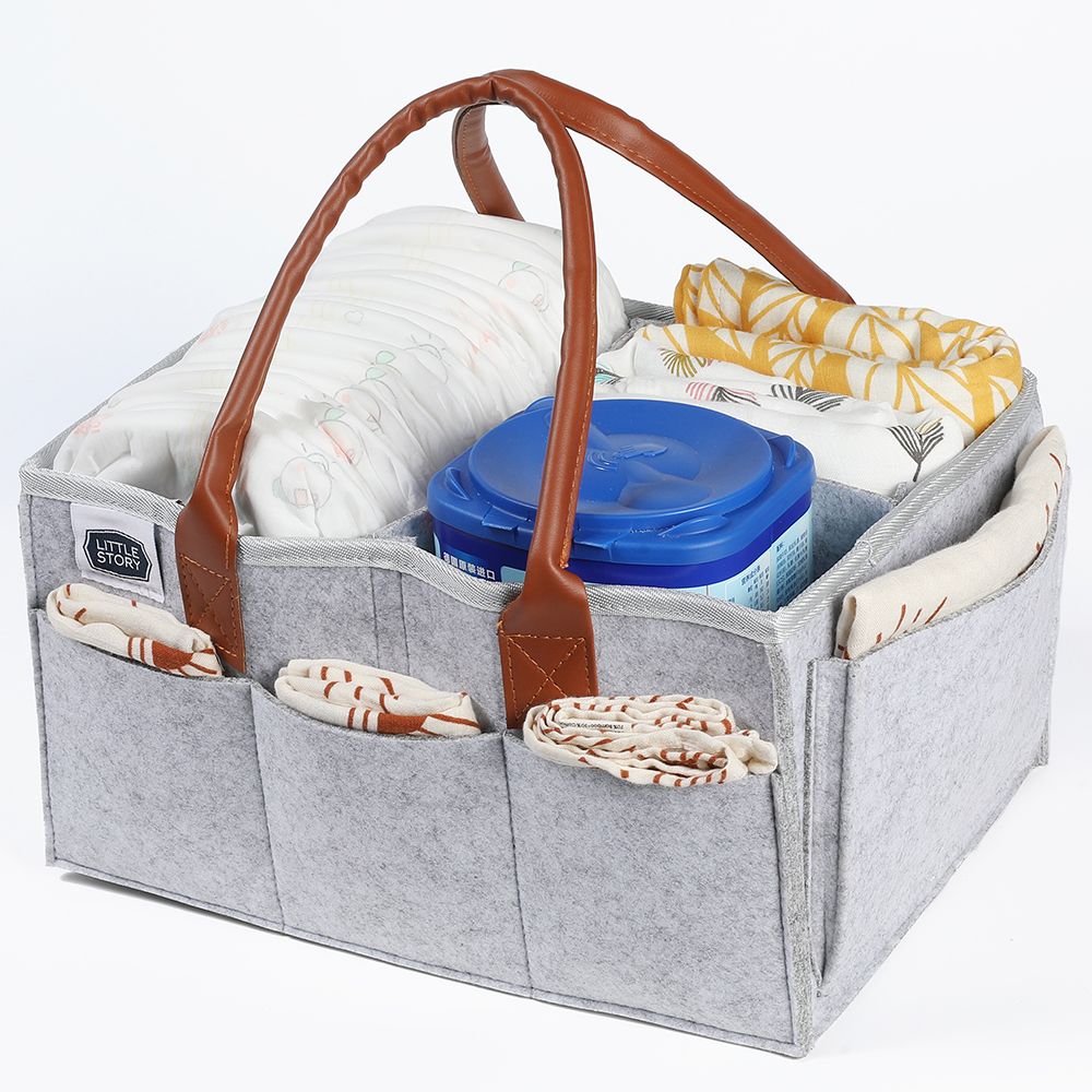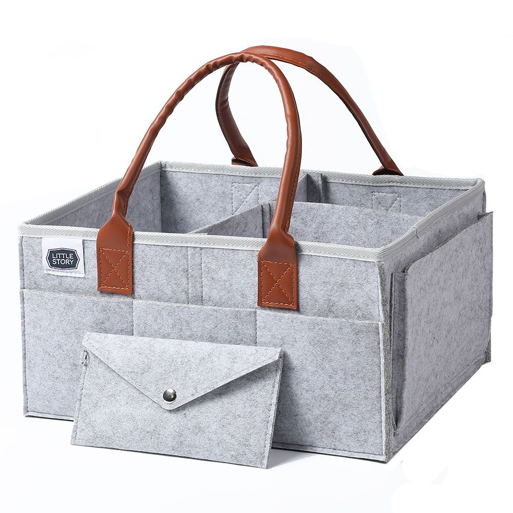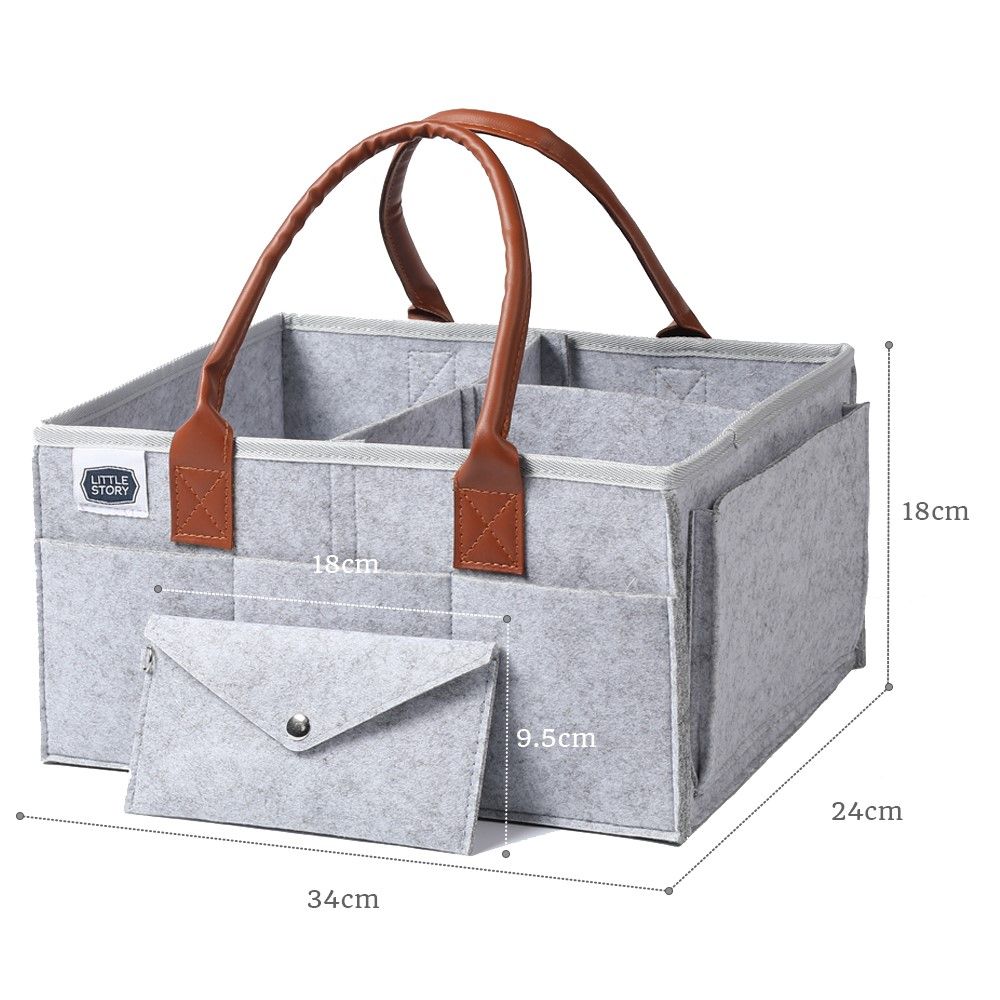 Little Story Diaper Caddy is a multipurpose organizer to help you to put those cute Rompers, Nappy, Wipes, Cream, Baby Toys, Pacifiers, Milk Bottles and everything you need to have an easy access! The strong vegan leather handles are soft to hold and add to the looks. The partitions can be removed according to your needs. The caddy features multiple pockets for easy storage and an additional Pouch for the carrying essentials along.