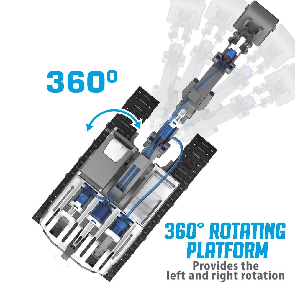 - Hydraulic Power: No need batteries and motors, water can drive the mechanical arm, the principle of hydraulic power, use operating lever to control various joint activities of mechanical arm