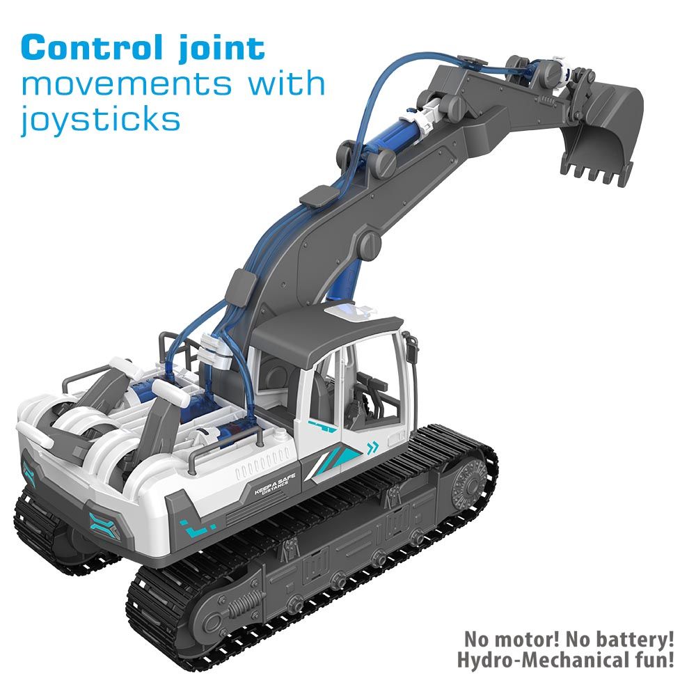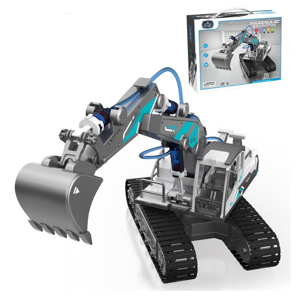 Little story DIY hydraulic power principle based 3-in-1 excavator/ bulldozer/ JCB toy. A variety of functions to meet your different needs. The toy does not need electricity and a motor, as water can drive the mechanical arm.