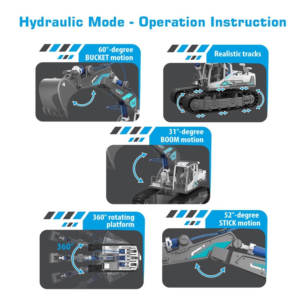 - Hydraulic Jaw: Digging, Lifting, and Collapsing, give full play to your imagination, feel the fun brought by the hydraulic jaw