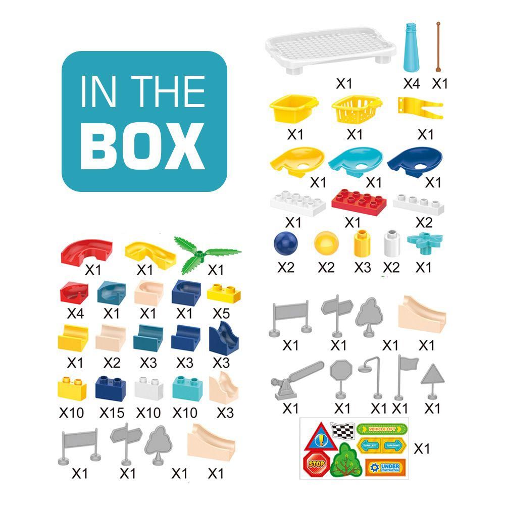 PACKING INCLUDES: 1 x Little Story Slide Track Rolling Ball Blocks Table(111pcs).