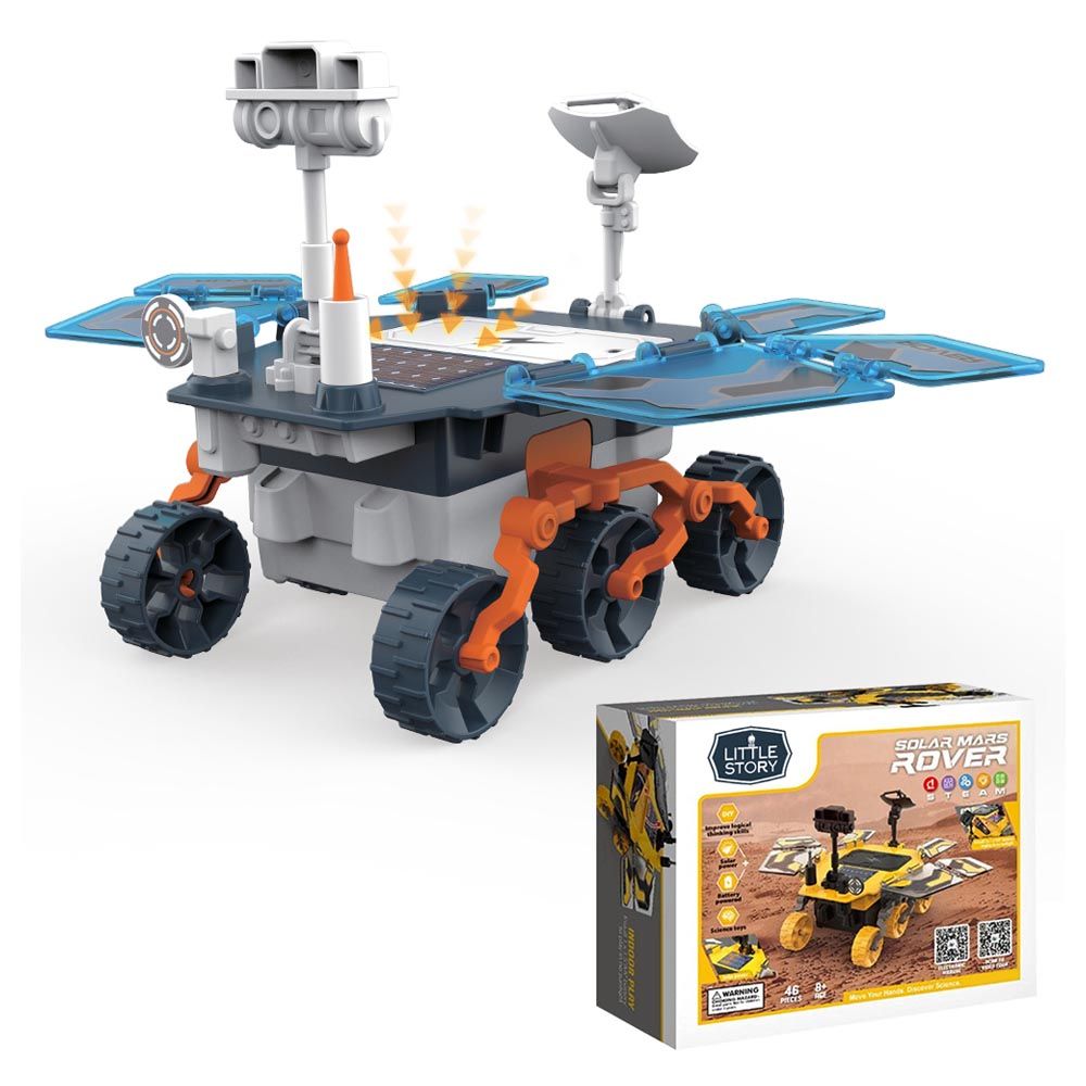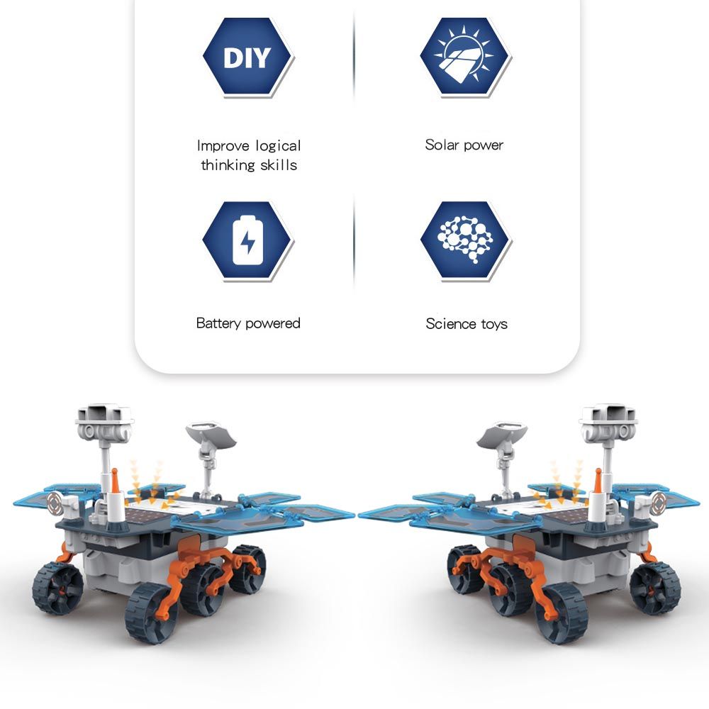 Little story DIY solar mars exploration rover is a unique scientific and technological educational toy that cultivate children's various ability during the growth process. This Mars Rover may foster your kids' imagination for space and help them learn critical science and technical concepts. Made of high-quality ABS materials that are strong and durable, solar-powered Rover toy is very safe for kids to play with.